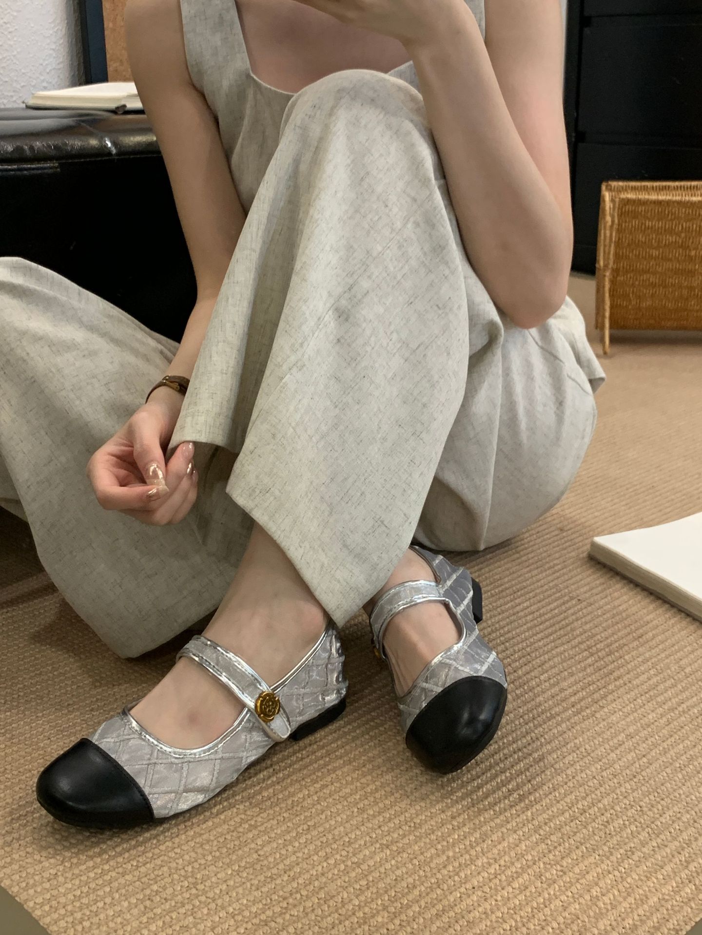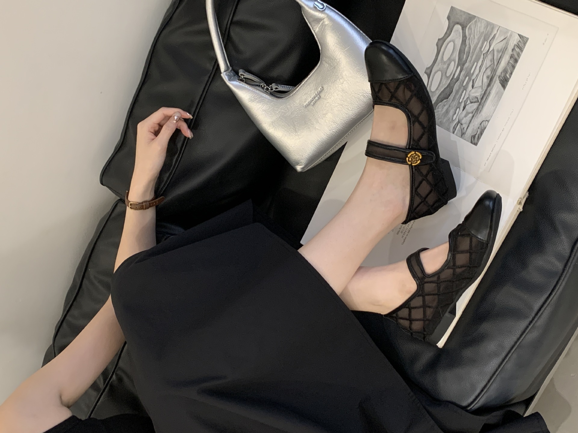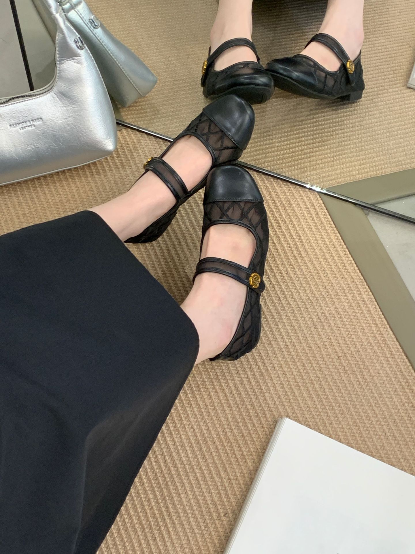고급 품질 2025 새로운 스타일 작은 향기로운 마름모꼴 메쉬 전자 자수 금속 버클 플랫 슈즈 메리 제인 신발스토어 가기