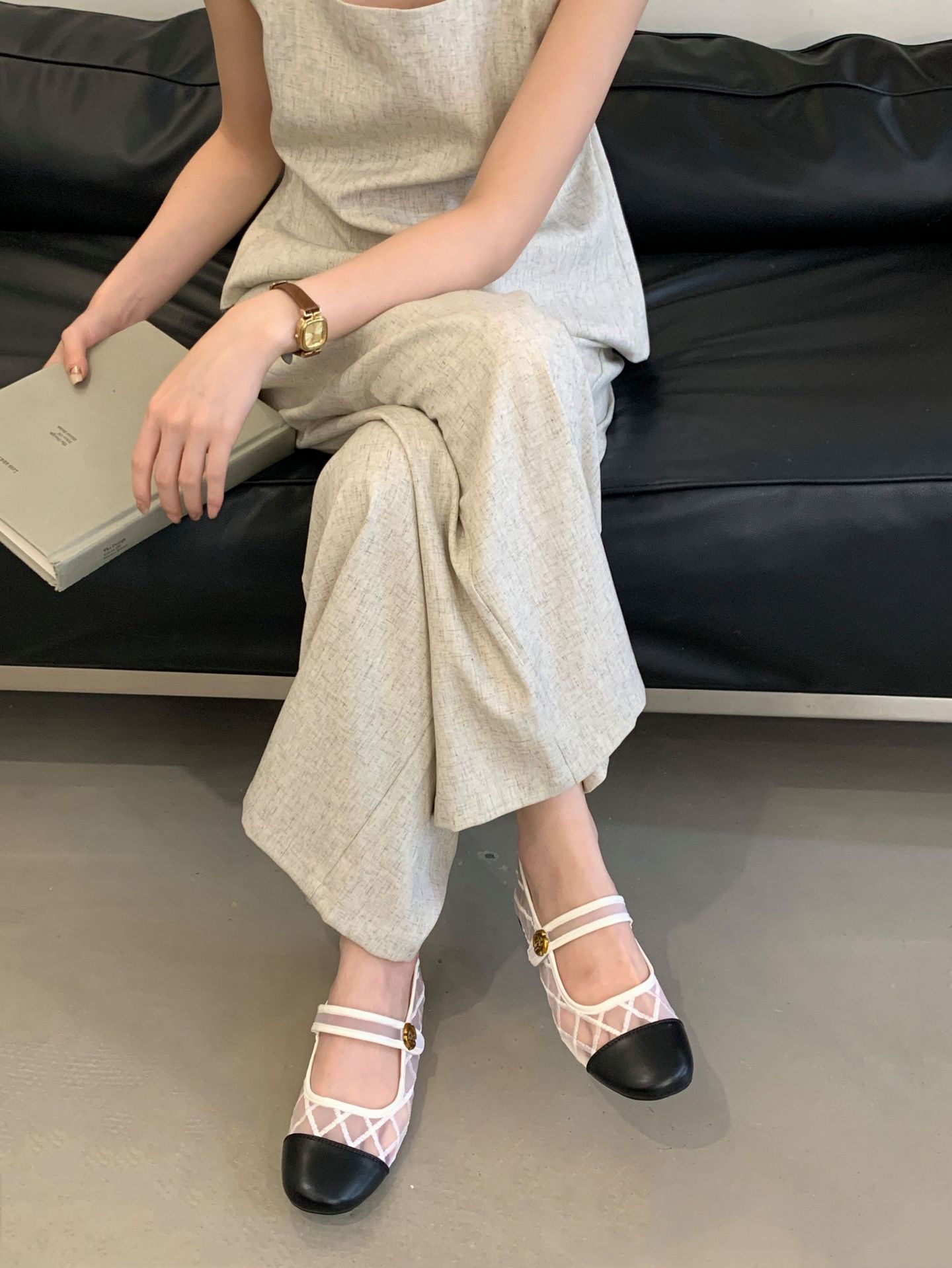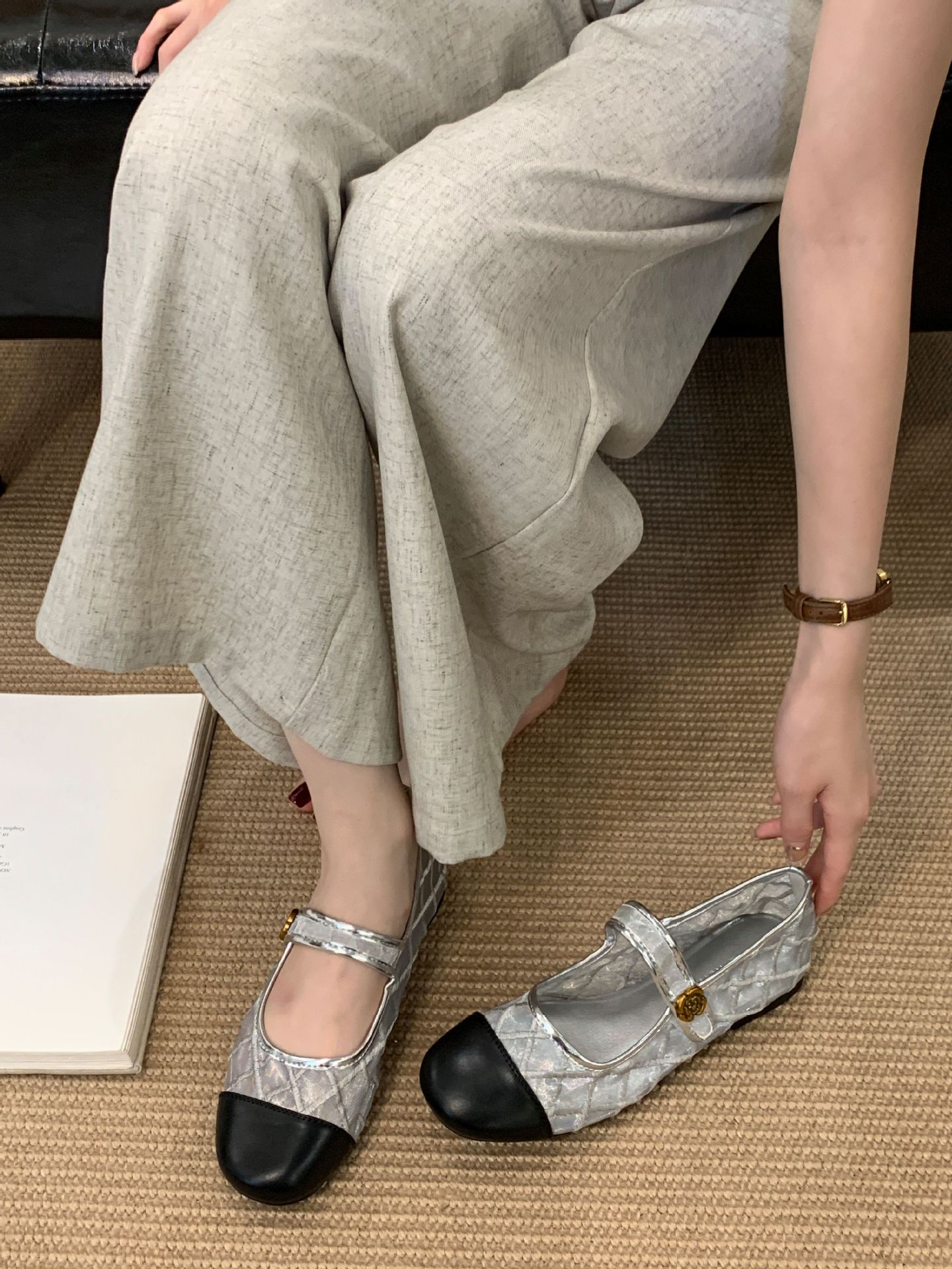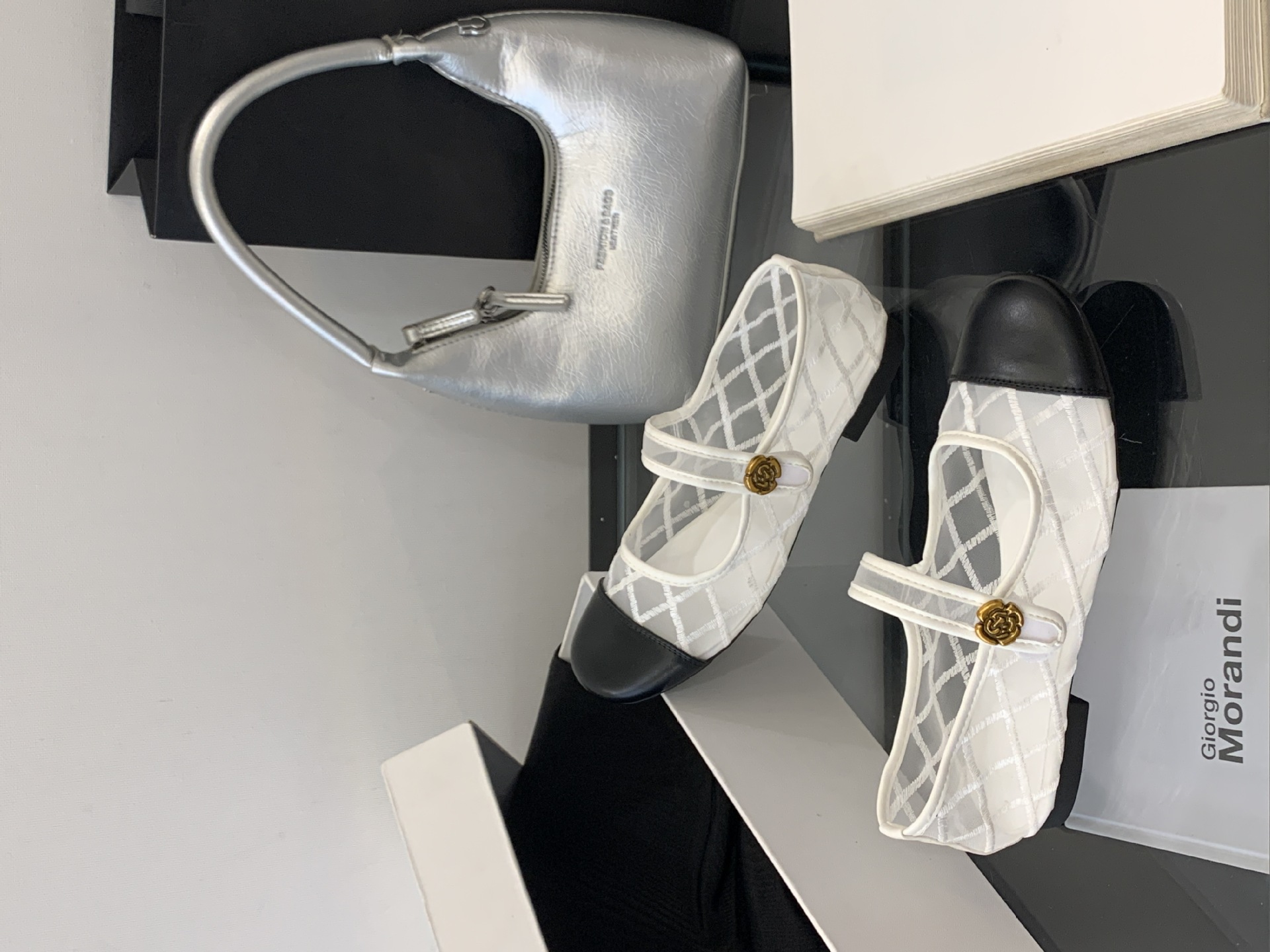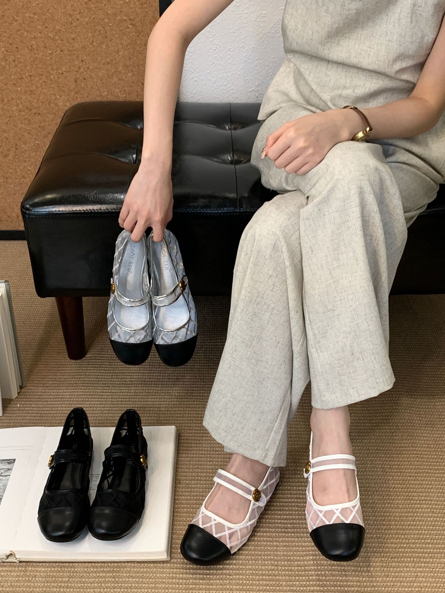 고급 품질 2025 새로운 스타일 작은 향기로운 마름모꼴 메쉬 전자 자수 금속 버클 플랫 슈즈 메리 제인 신발스토어 가기