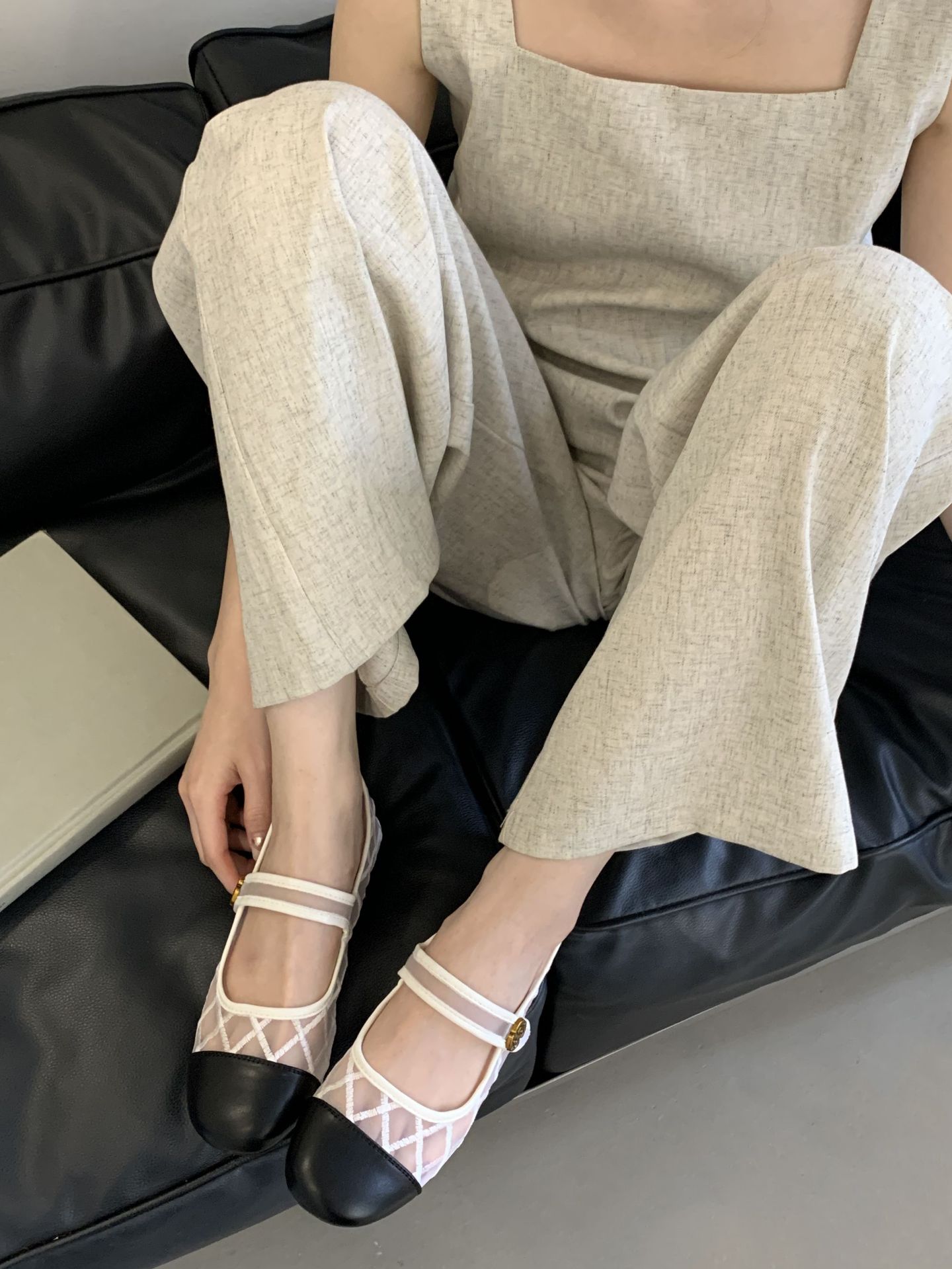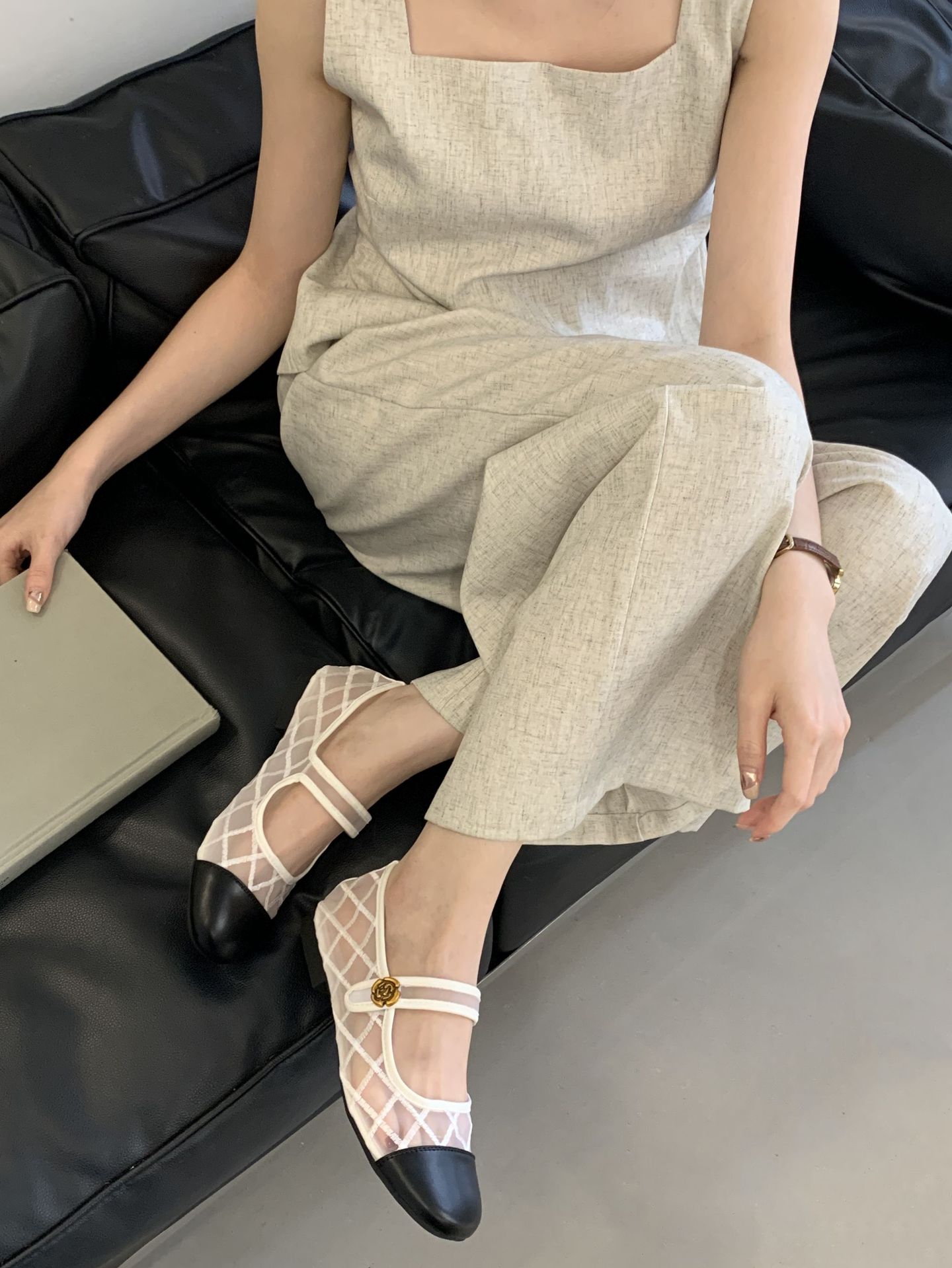 고급 품질 2025 새로운 스타일 작은 향기로운 마름모꼴 메쉬 전자 자수 금속 버클 플랫 슈즈 메리 제인 신발