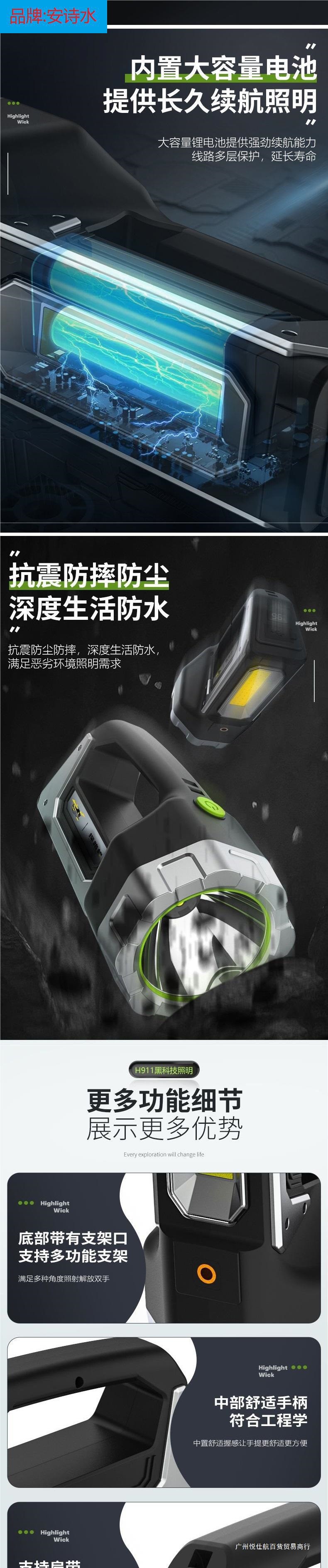 손전등 강한 빛 휴대용 탐조등 광부 램프 충전식 야외 슈퍼 밝은 고출력 LED 장거리 홈 순찰