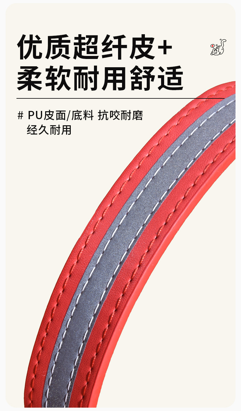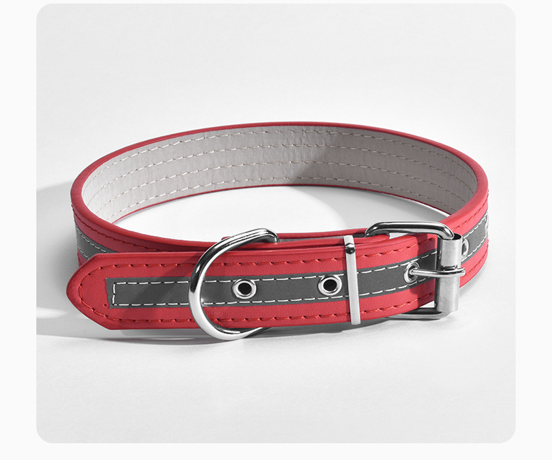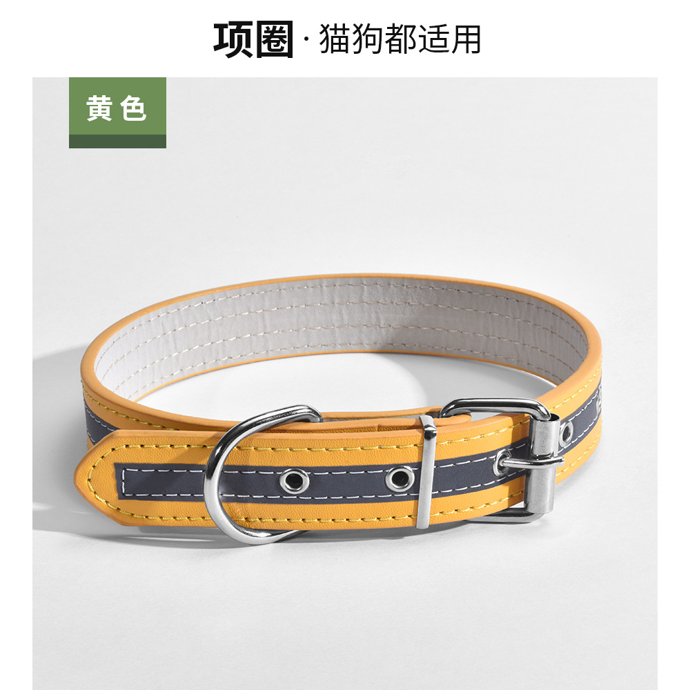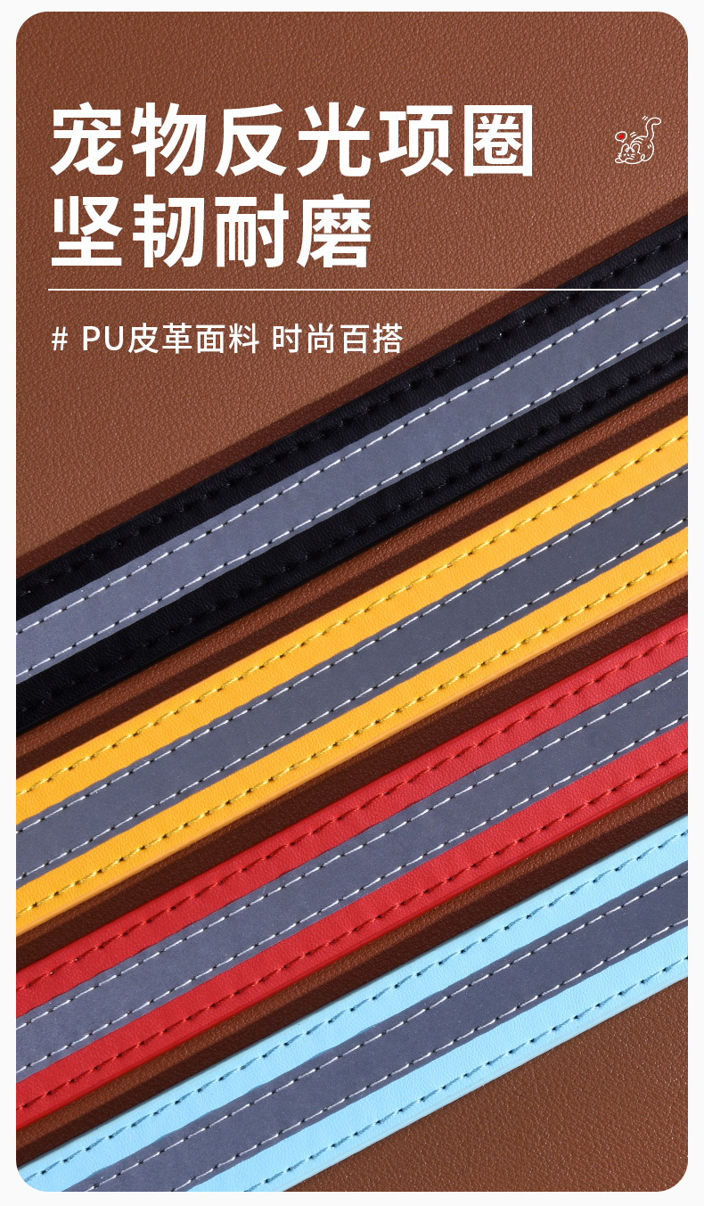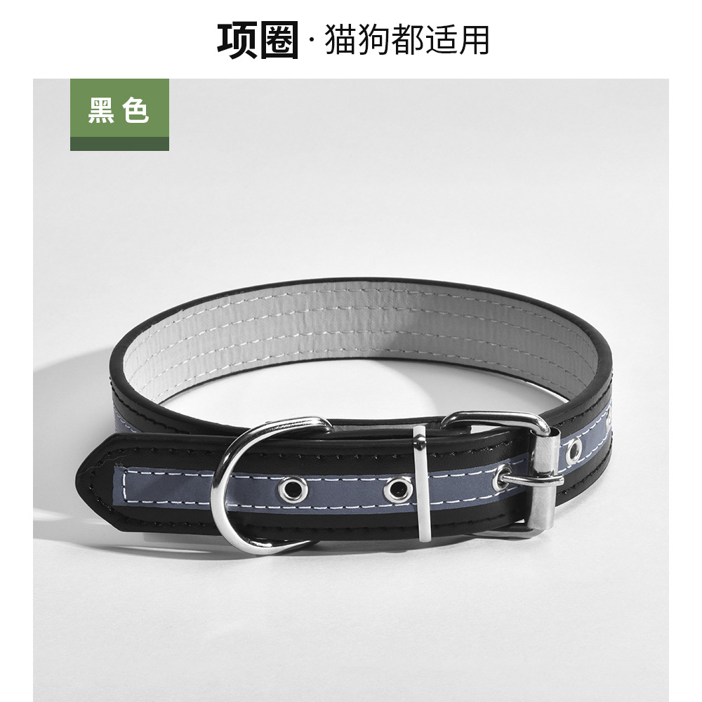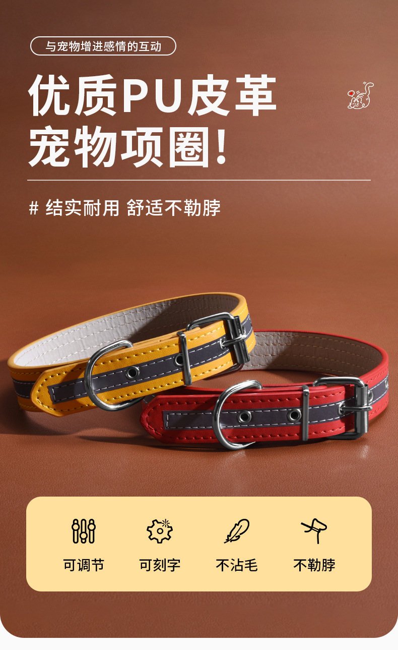 국경을 넘는 인기 애완동물 액세서리 강아지 목걸이 PU 가죽 내마모성 야간 반사 스트립 합금 장식 부드러운 고양이 목걸이