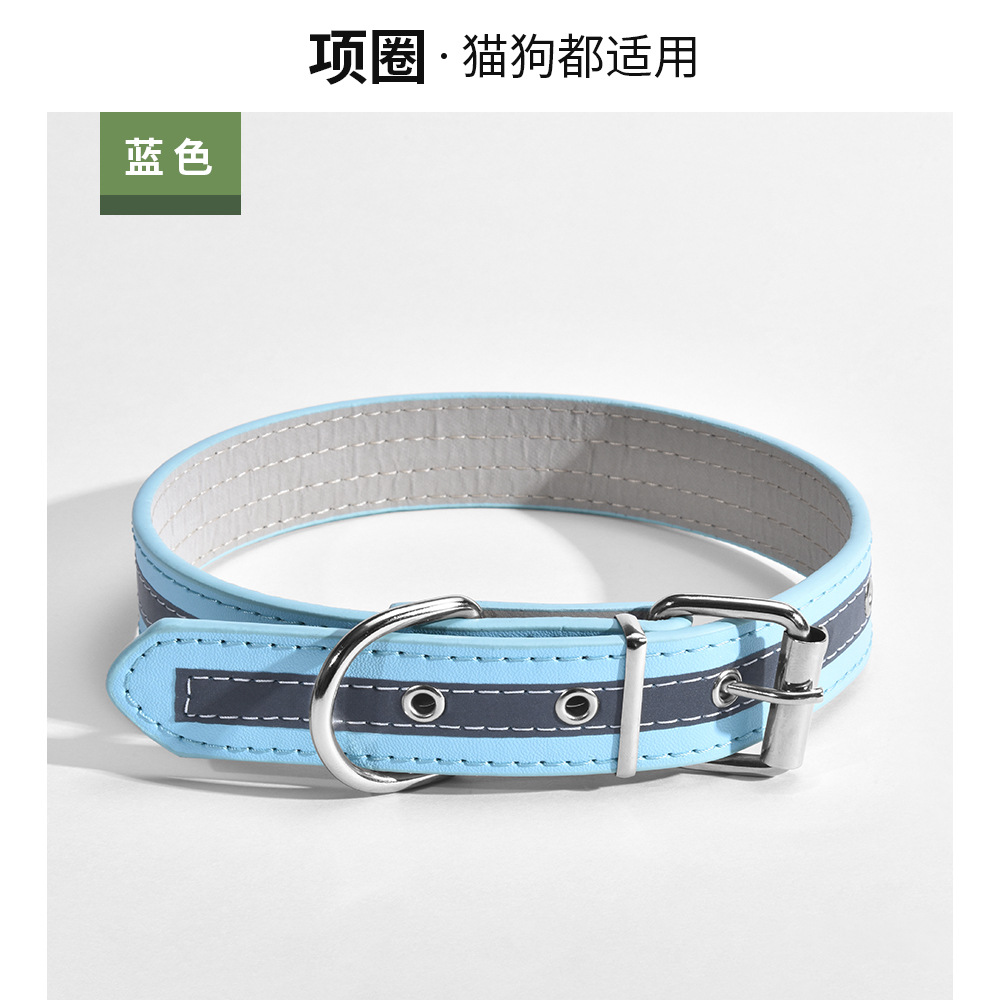 국경을 넘는 인기 애완동물 액세서리 강아지 목걸이 PU 가죽 내마모성 야간 반사 스트립 합금 장식 부드러운 고양이 목걸이스토어 가기