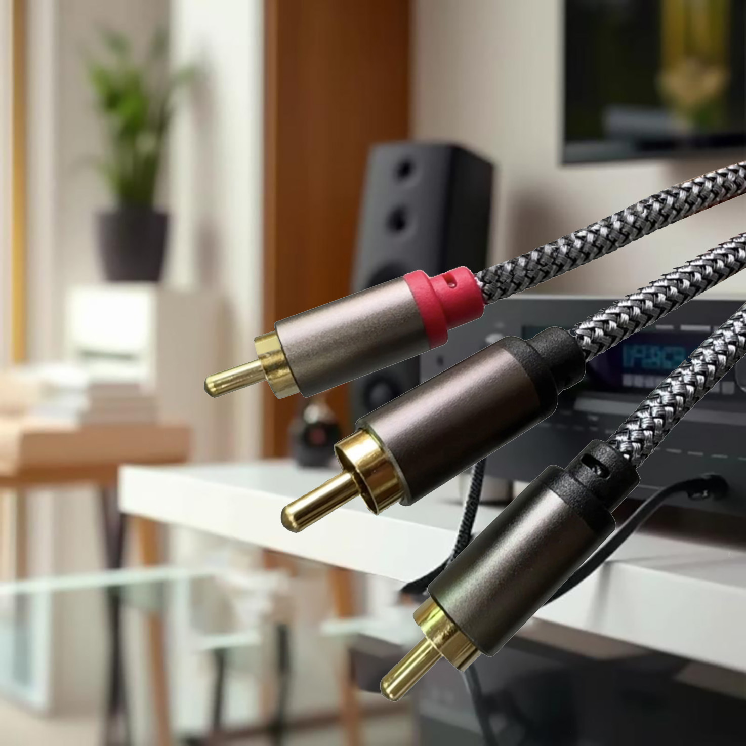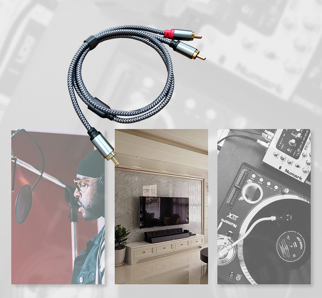 RCA转2RCA公低音炮双莲花一分二母音频线电脑音箱连接线