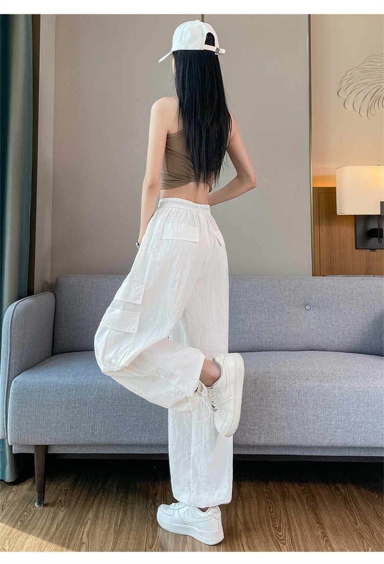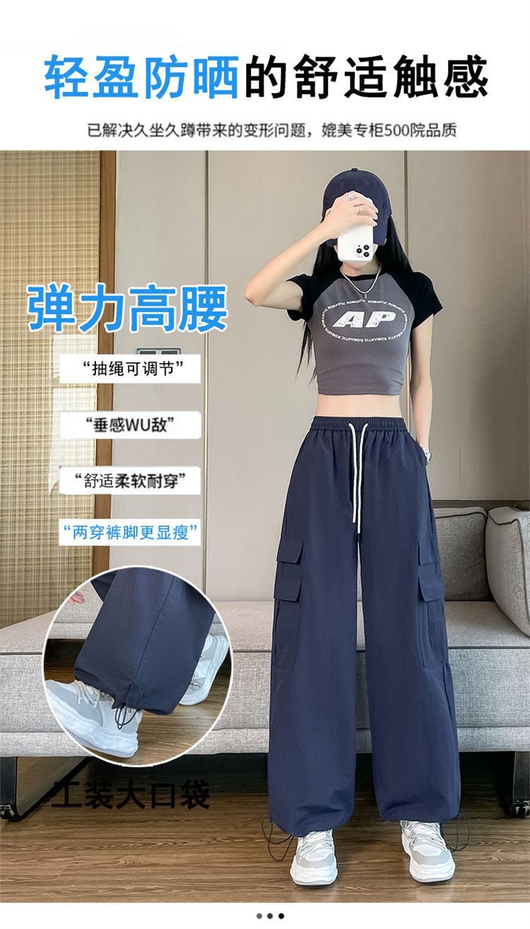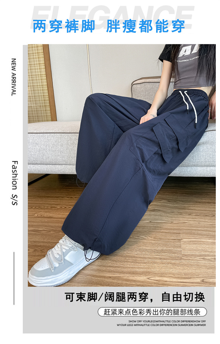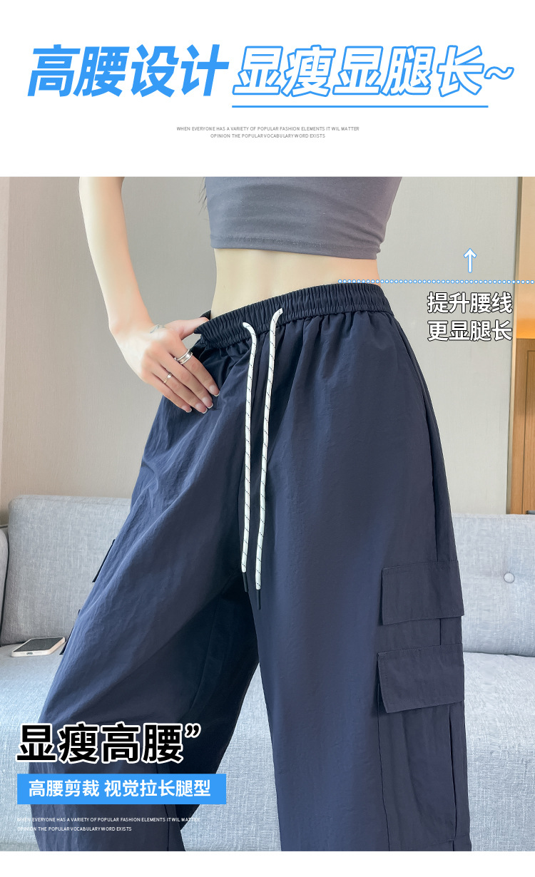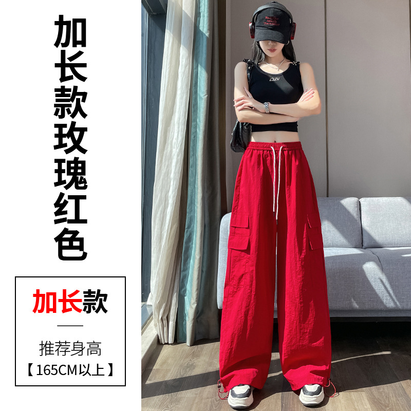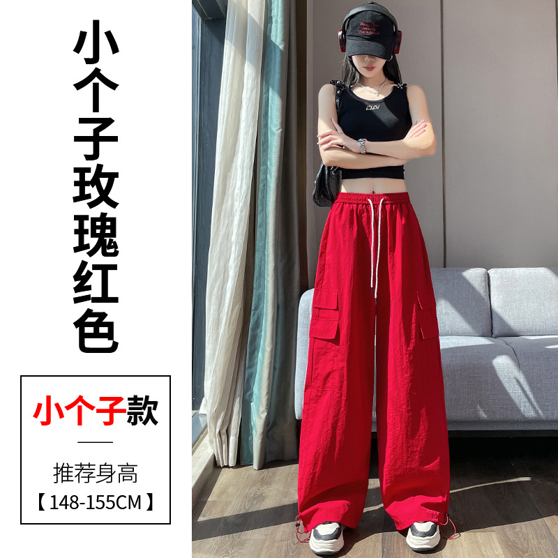 La Chapelle 아메리칸 로즈 레드 아이스 실크 속건성 여성용 작업복 여름 얇은 하이 웨이스트 하이킹 와이드 레그 파라트리저 바지스토어 가기