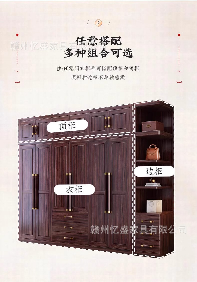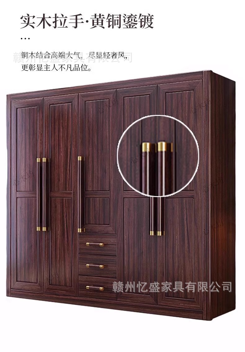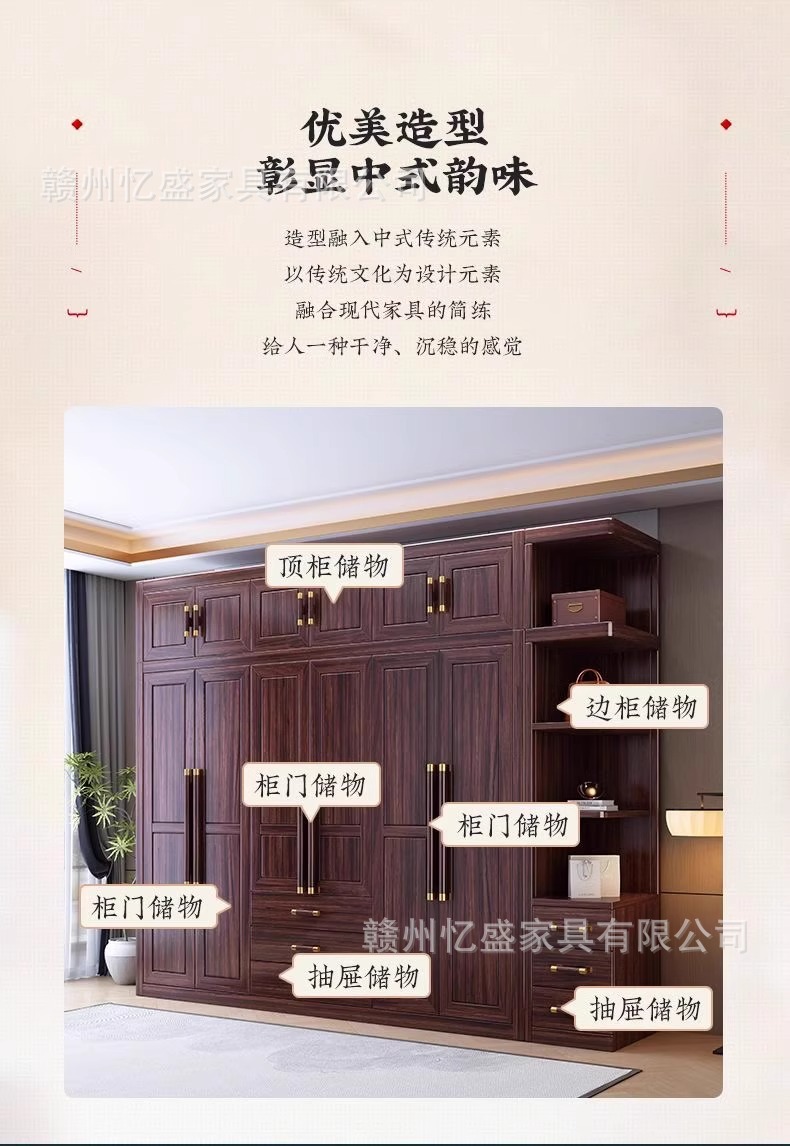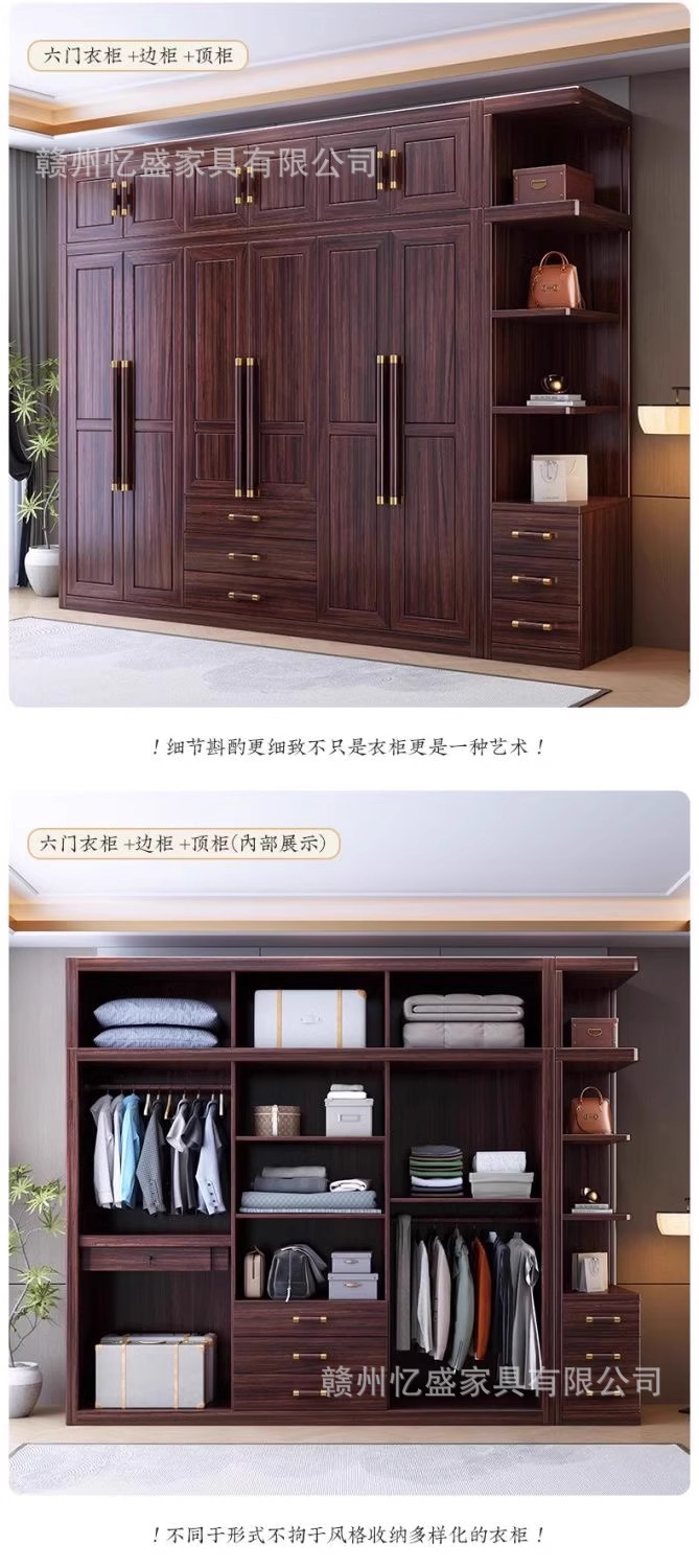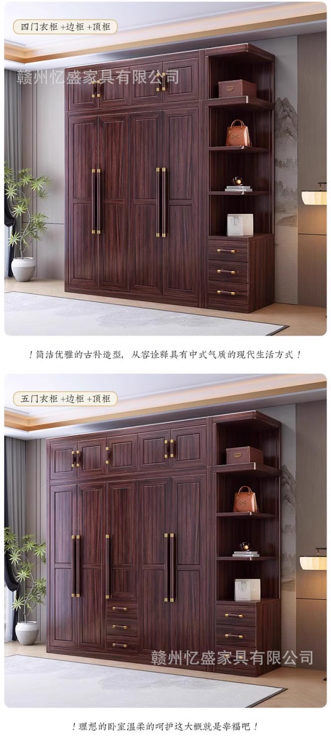 새로운 중국 스타일의 검은 나무 단단한 나무 옷장 대용량 침실 수납 옷장 현대적인 간단한 크기의 가족 옷장스토어 가기
