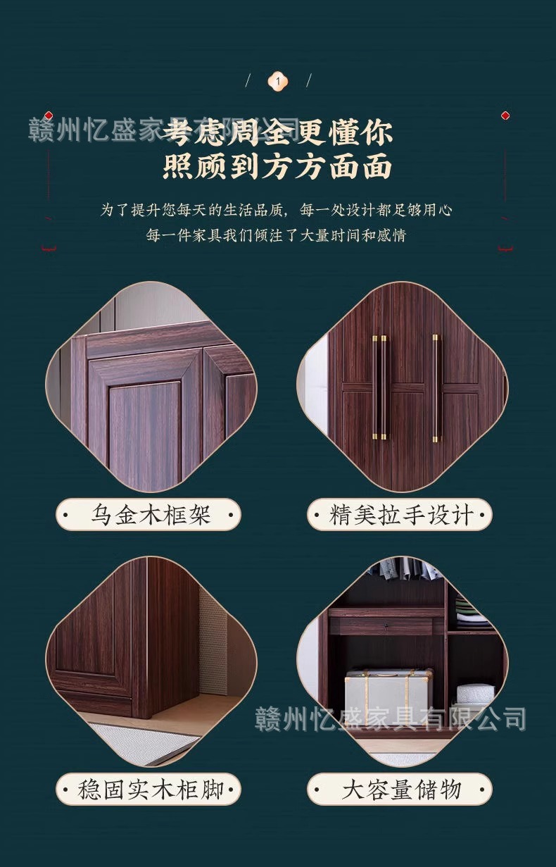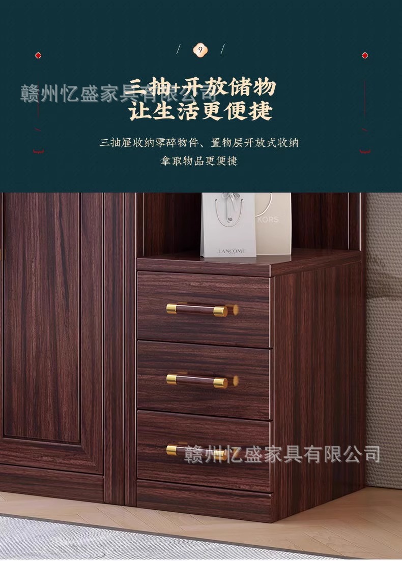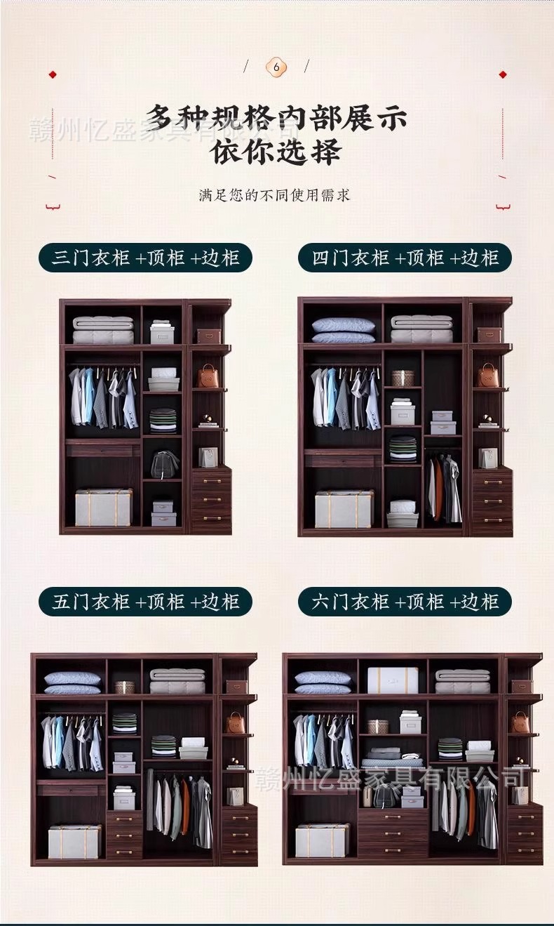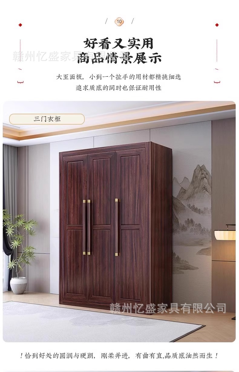 새로운 중국 스타일의 검은 나무 단단한 나무 옷장 대용량 침실 수납 옷장 현대적인 간단한 크기의 가족 옷장스토어 가기