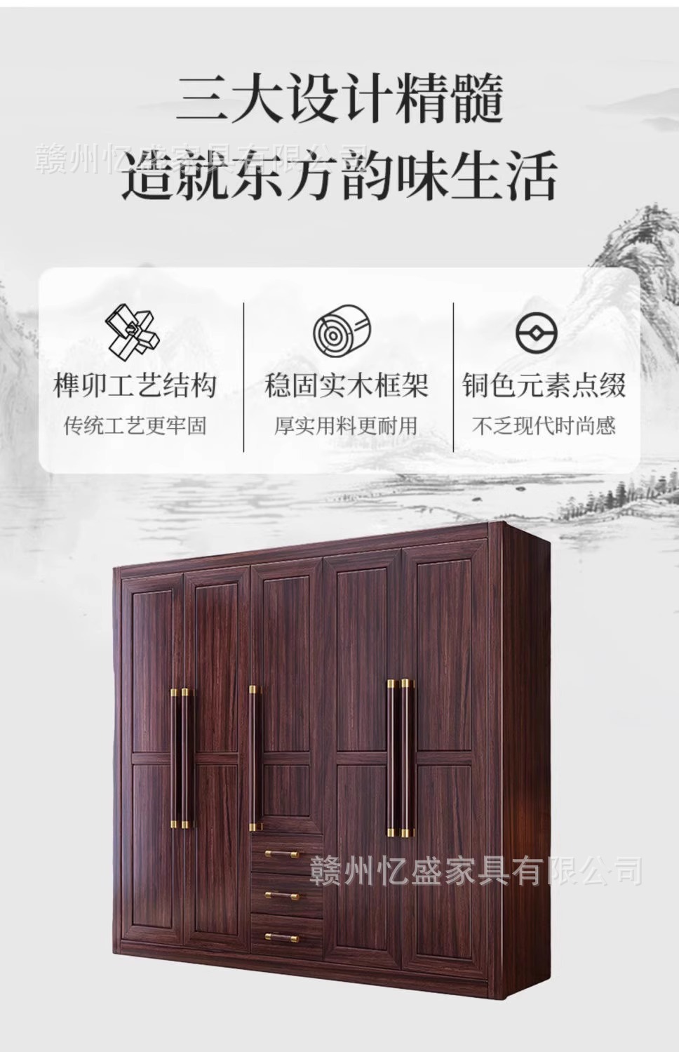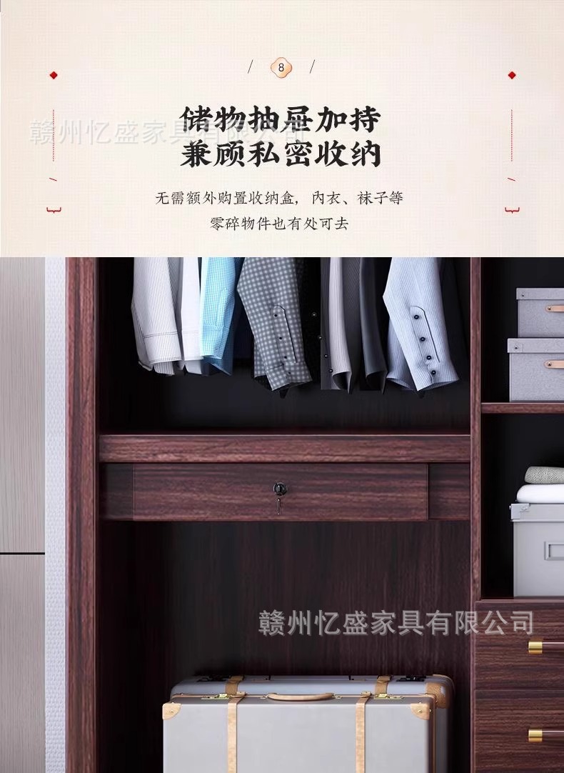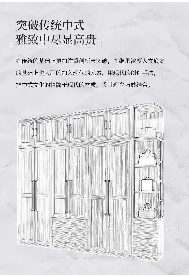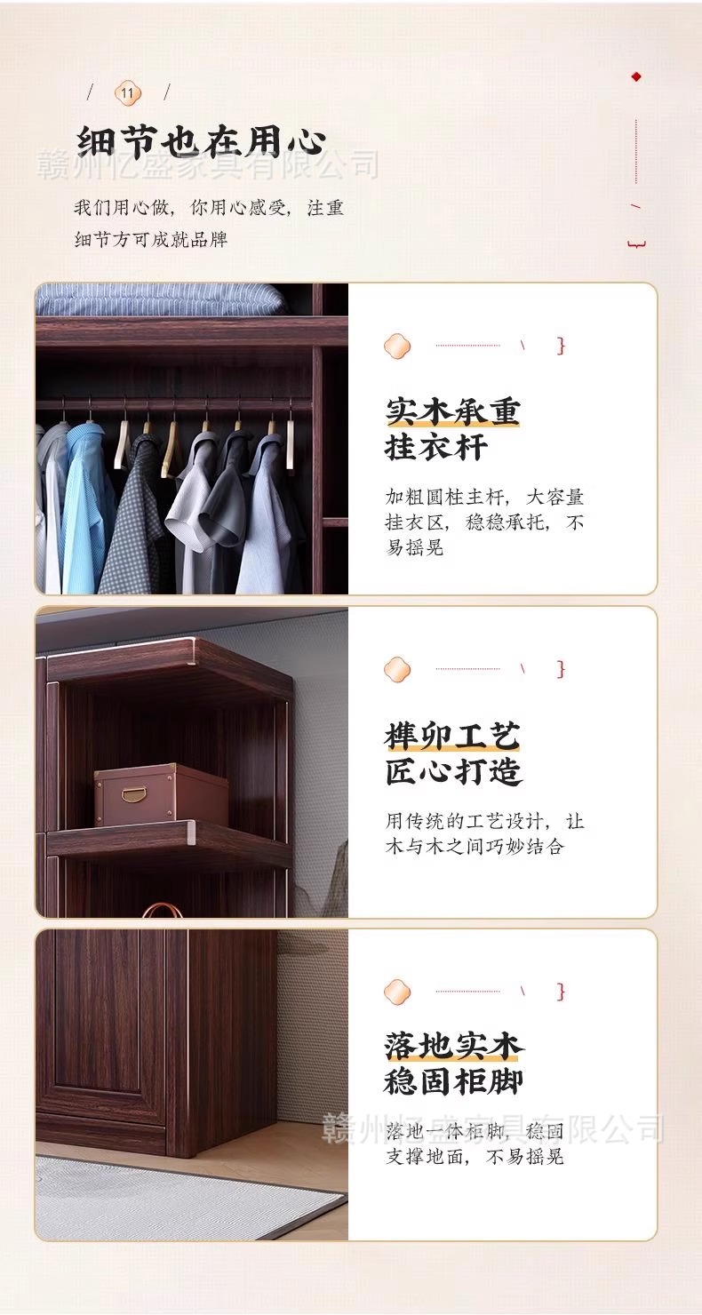 새로운 중국 스타일의 검은 나무 단단한 나무 옷장 대용량 침실 수납 옷장 현대적인 간단한 크기의 가족 옷장스토어 가기
