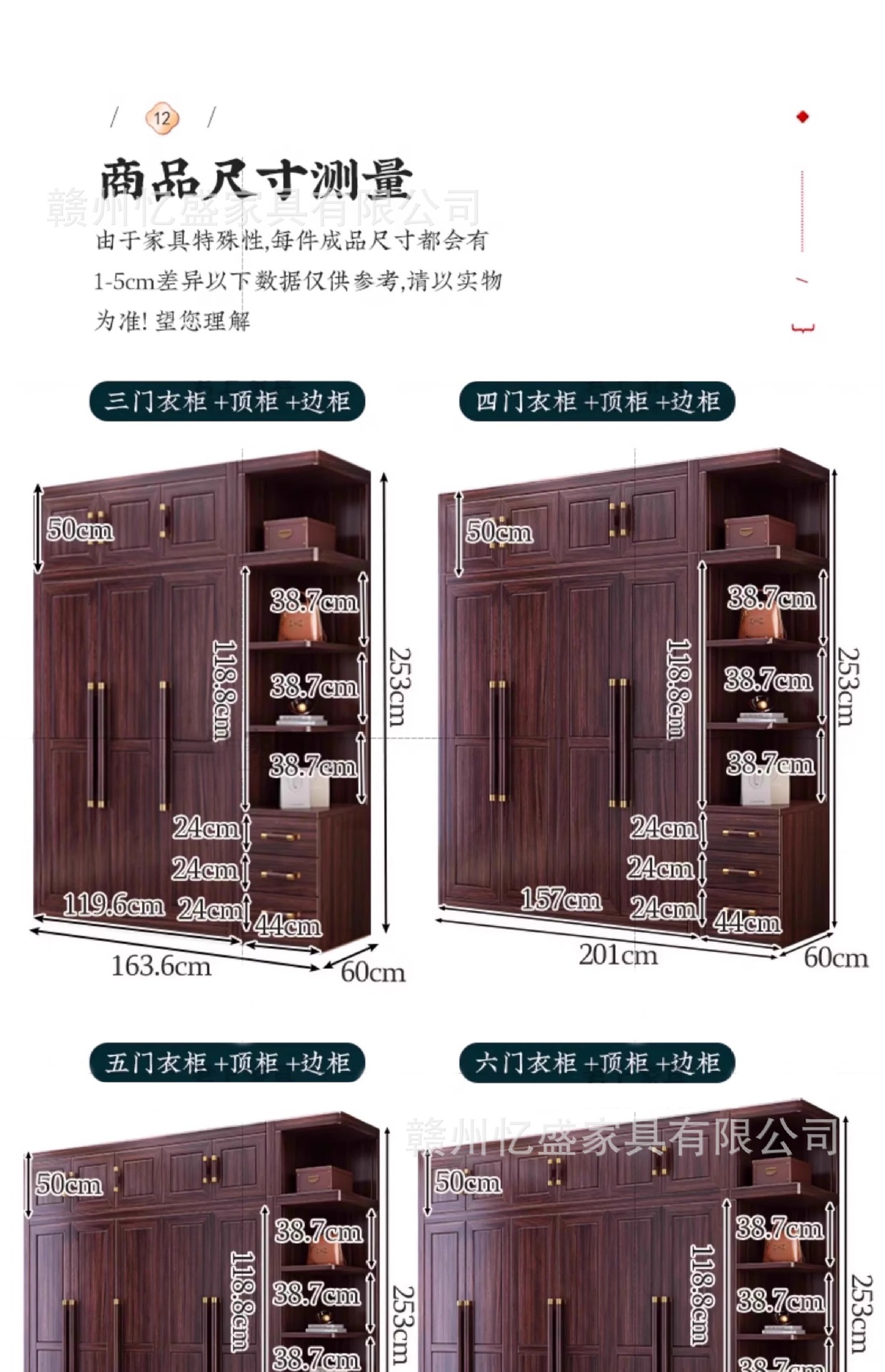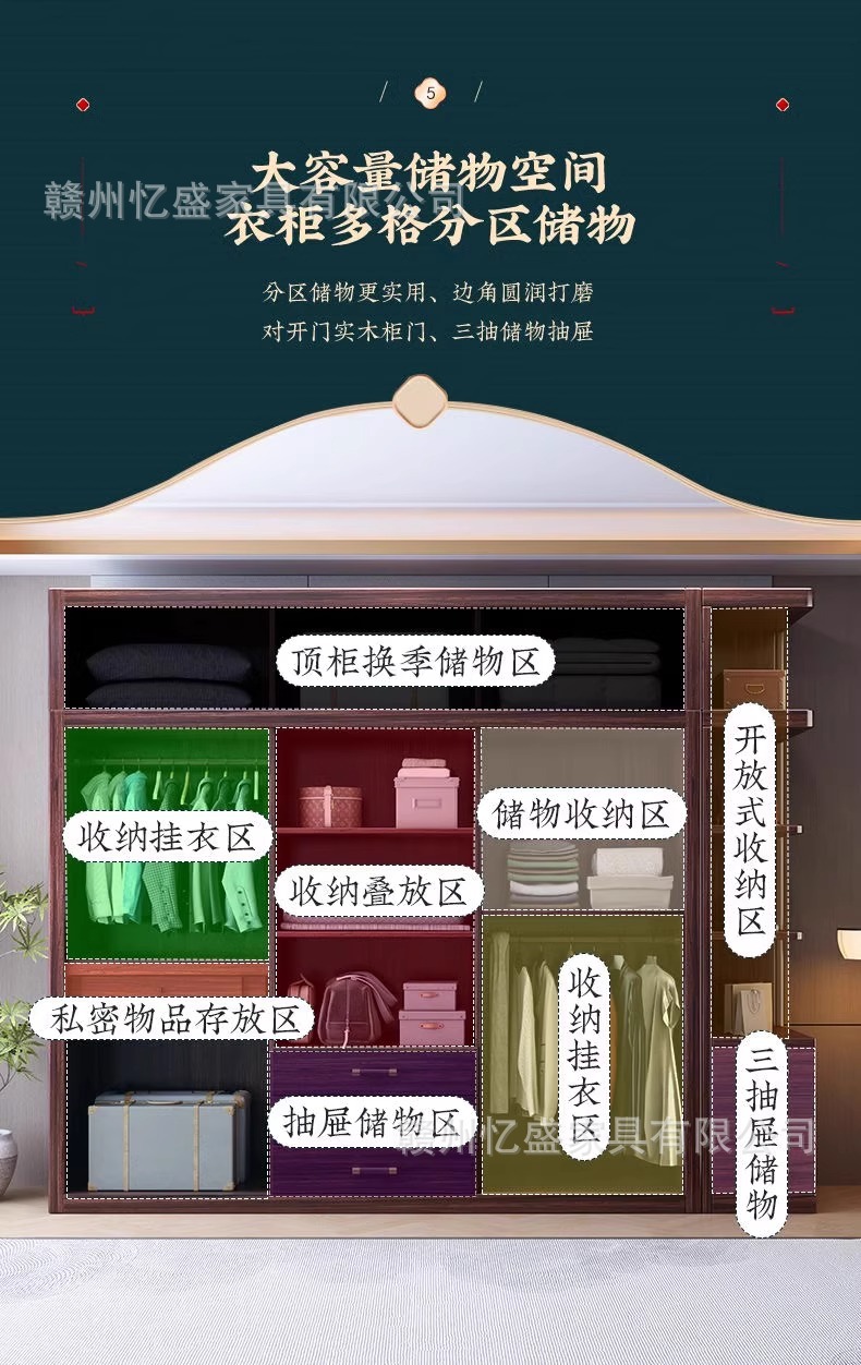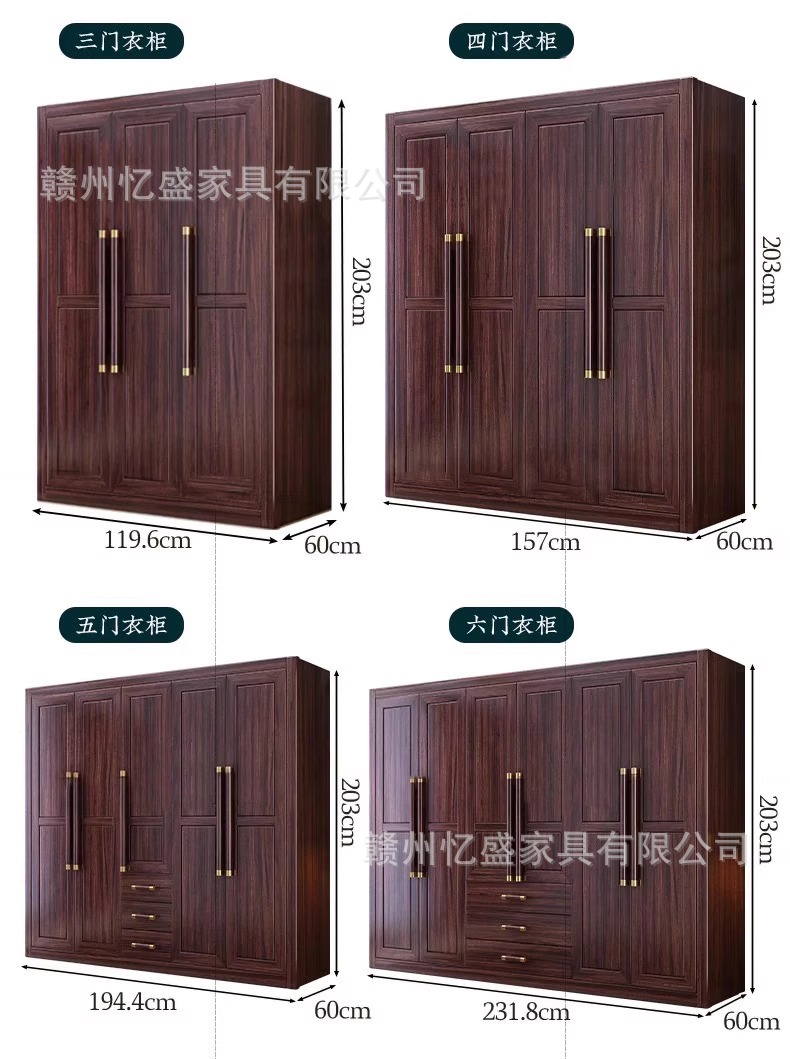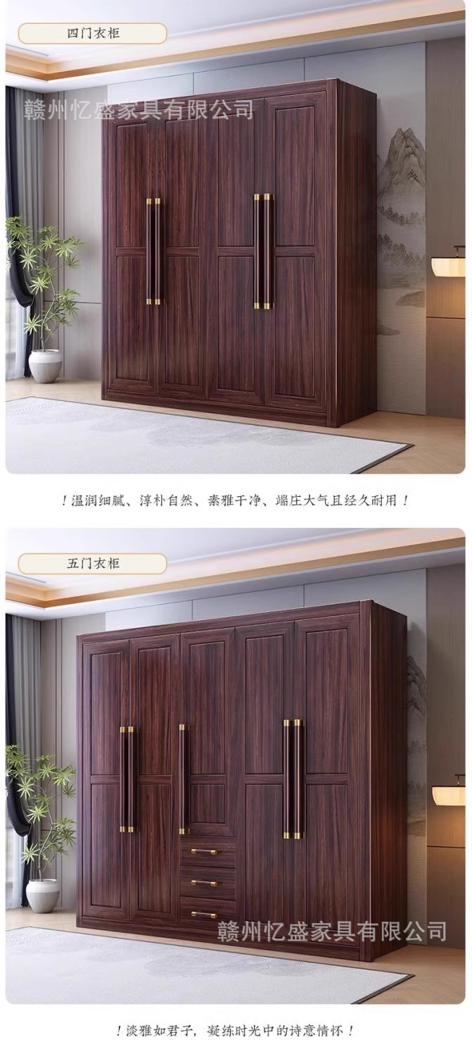새로운 중국 스타일의 검은 나무 단단한 나무 옷장 대용량 침실 수납 옷장 현대적인 간단한 크기의 가족 옷장