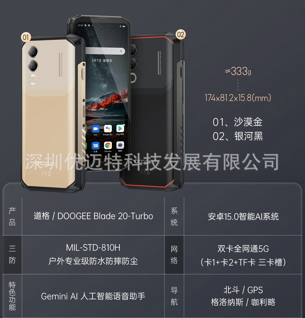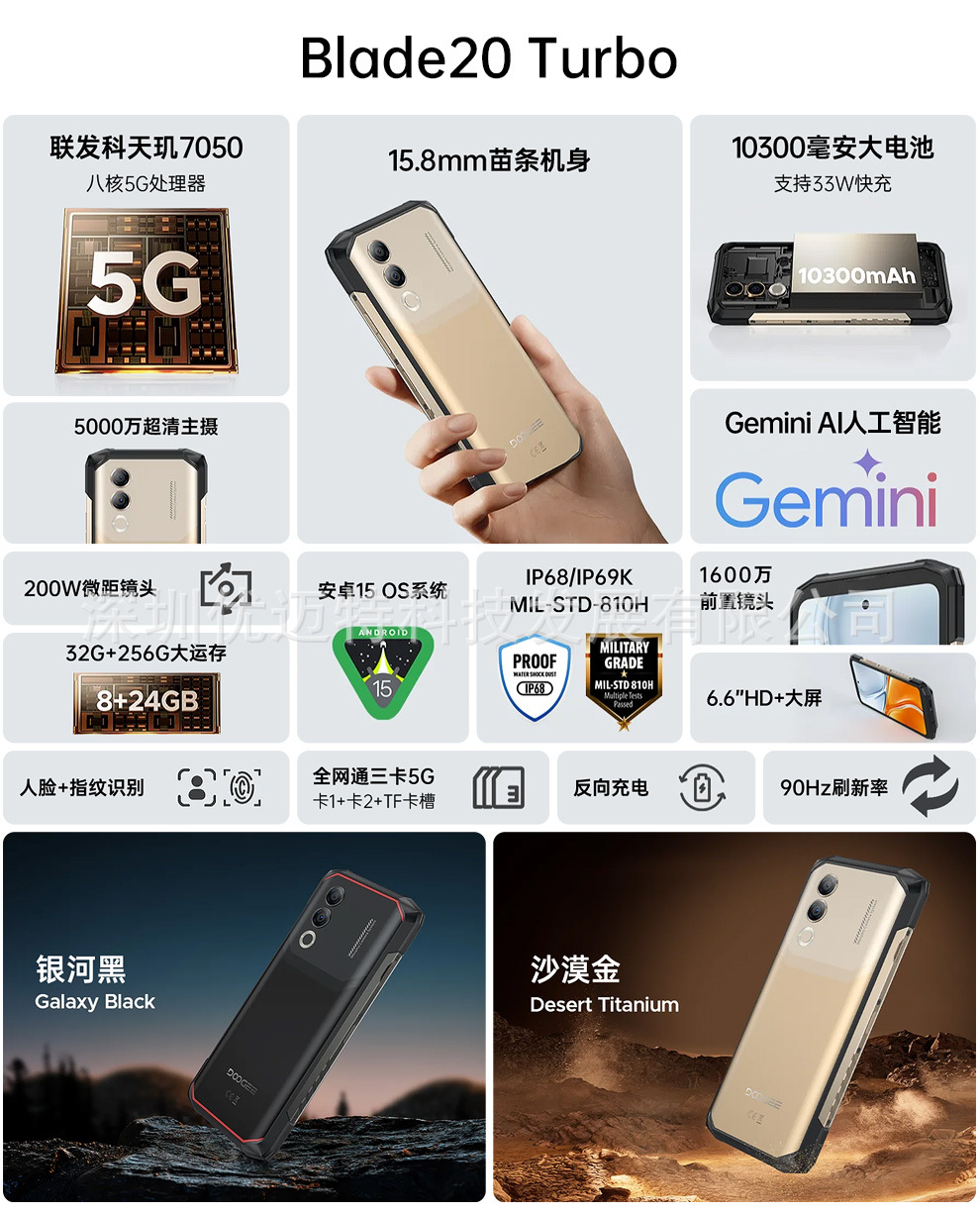 Doug Blade20 Turbo 대형 배터리 3중 스마트폰 5G 방수 및 낙하 방지 Android 대형 스크린 초장기 대기