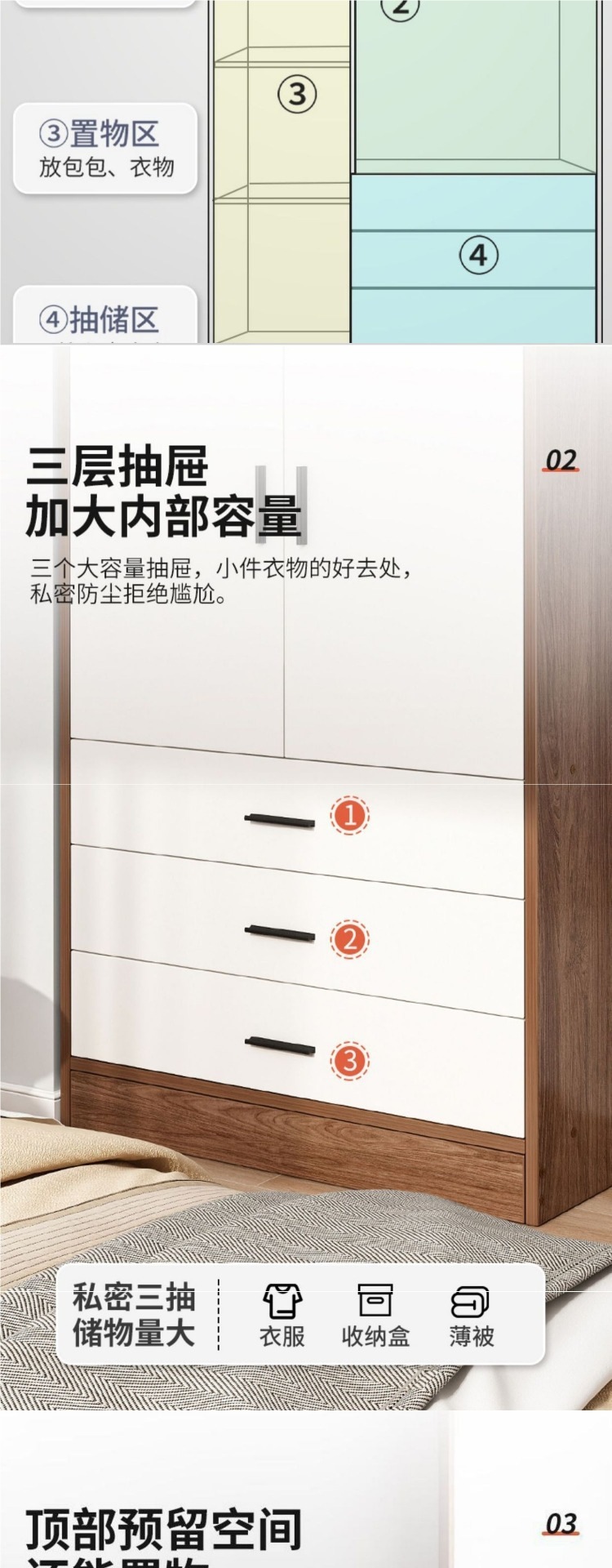 • +업그레이드된 3도어 3서랍 모델 [다크월넛 100cm] 택배+
