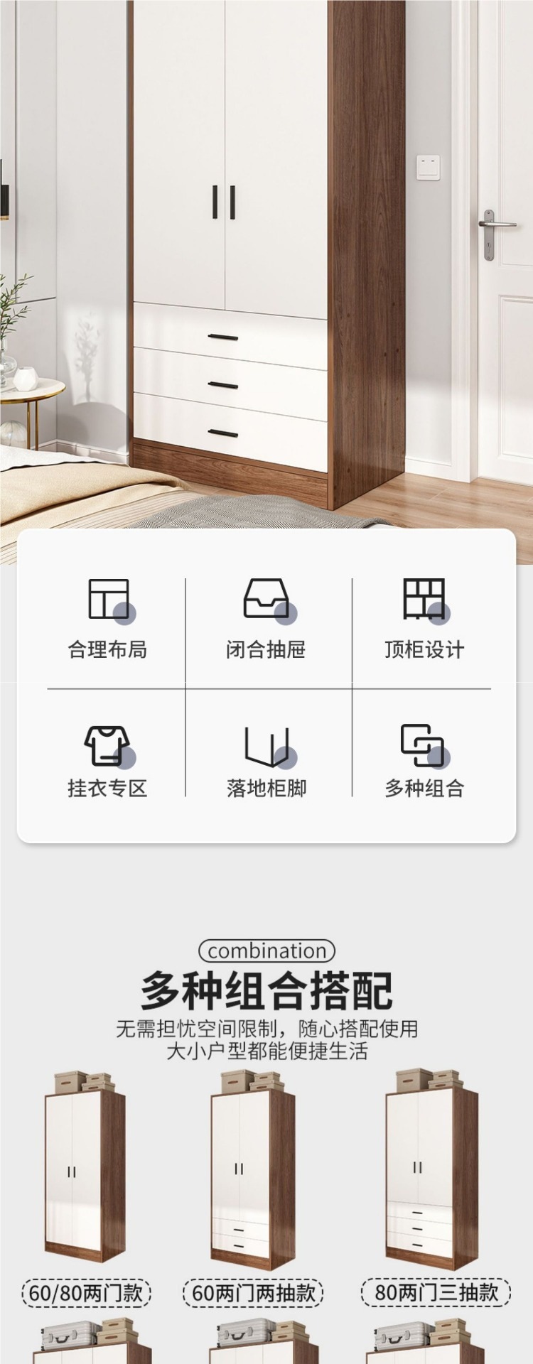 가정용 옷장 새로운 스타일 2024 인기있는 작은 아파트 작은 방 옷장 홈 침실 보관 간단한 2 도어 옷장