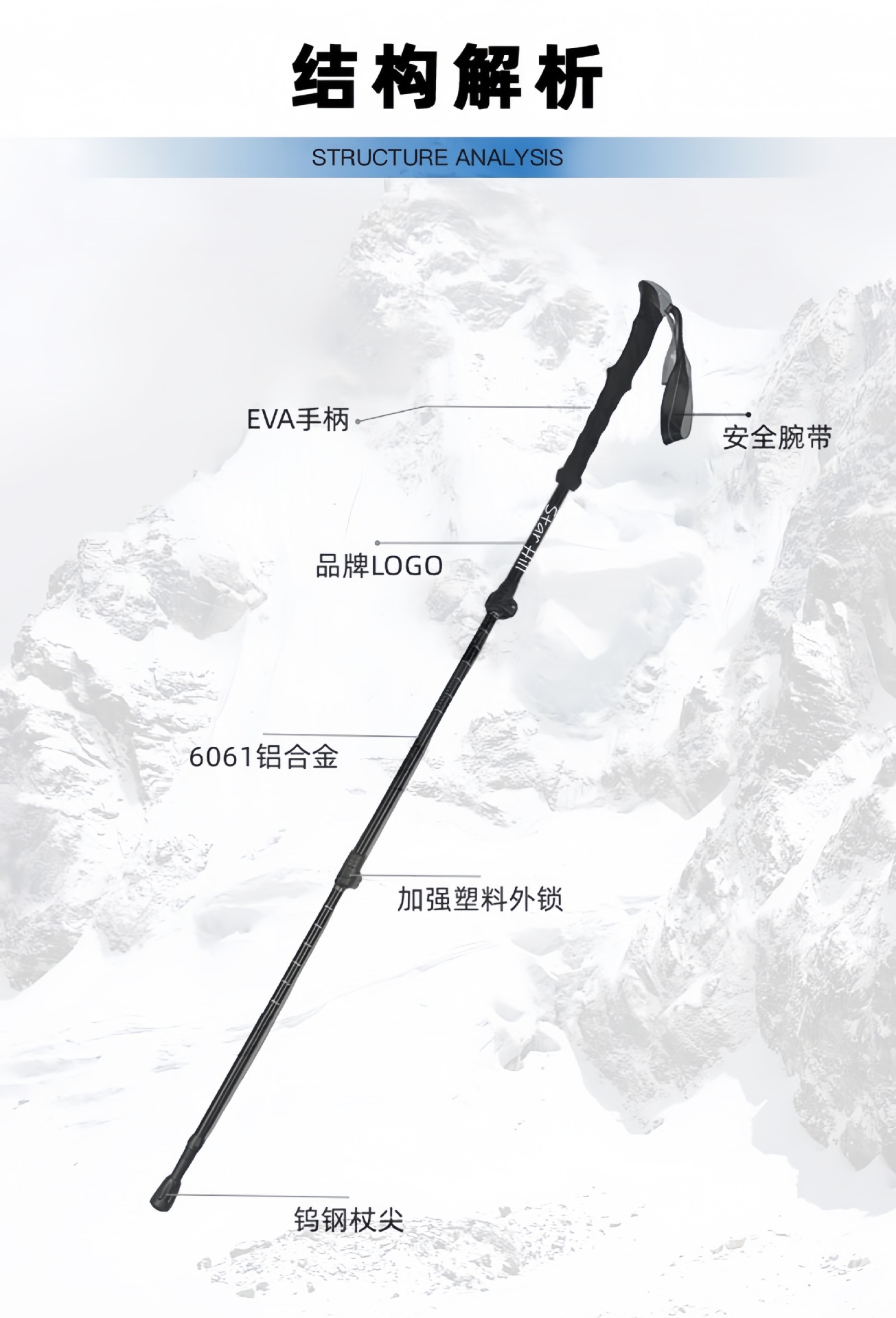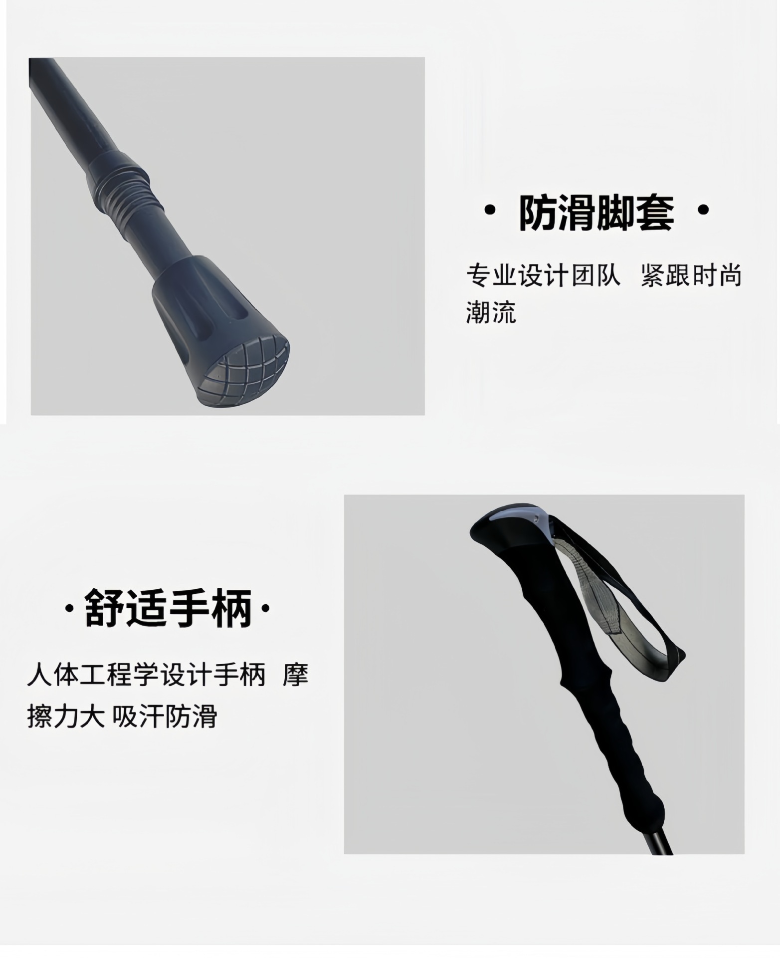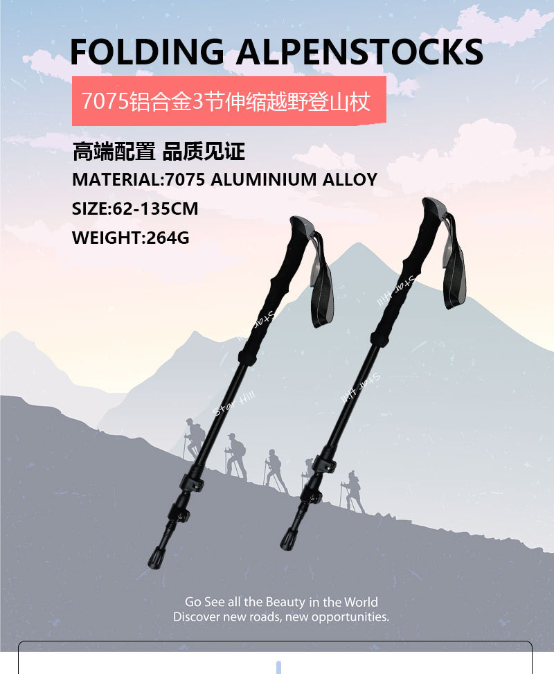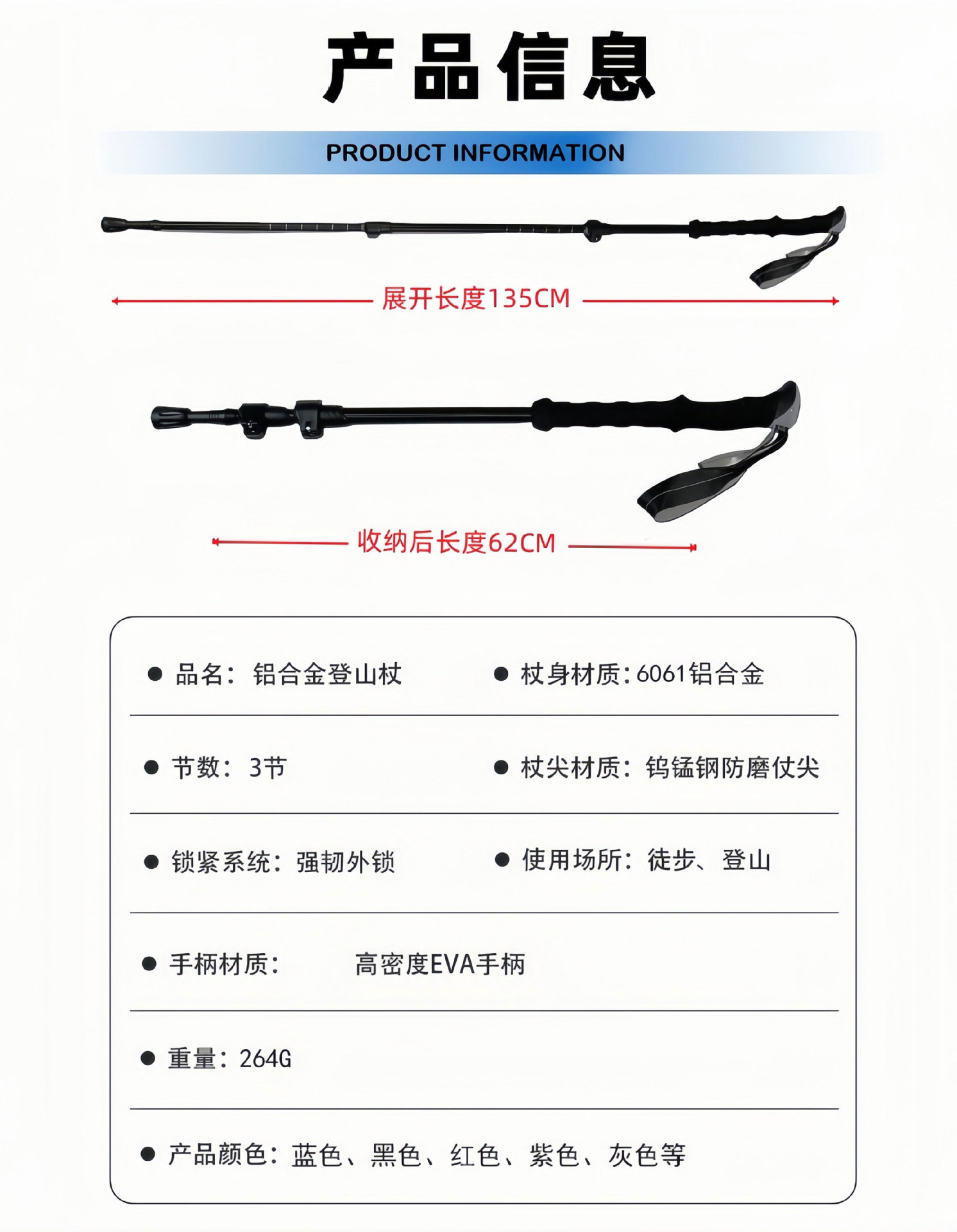 야외 등산 스틱, 3단 접이식, 외부 잠금, 알루미늄 합금, 여행용 하이킹 스틱, 보관 가능, 미끄럼 방지, 내구성, 경량