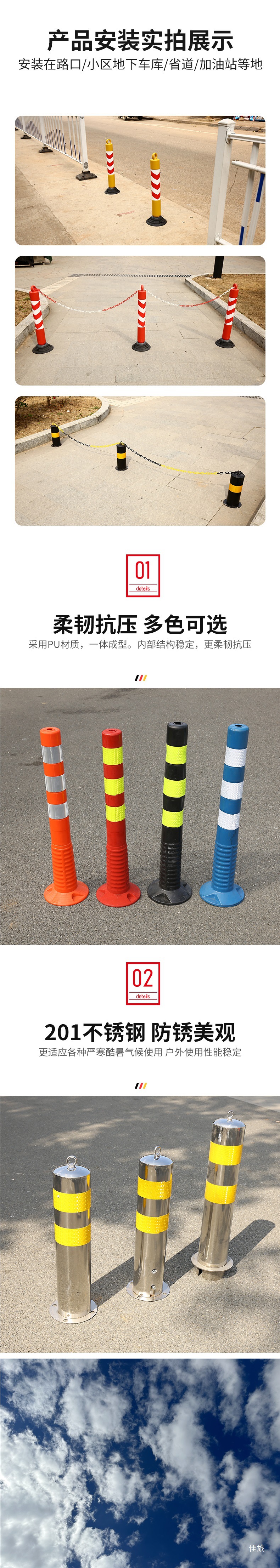 • 100CM 플라스틱 차선 구분선 + PU 회색 고광택 필름 기둥