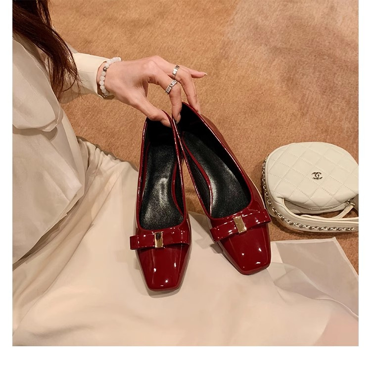 2025년 여름 신상 패션 통근 다용도 메리제인 슈즈, 얕은 입구 리본, 심플한 두꺼운 굽 슈즈스토어 가기