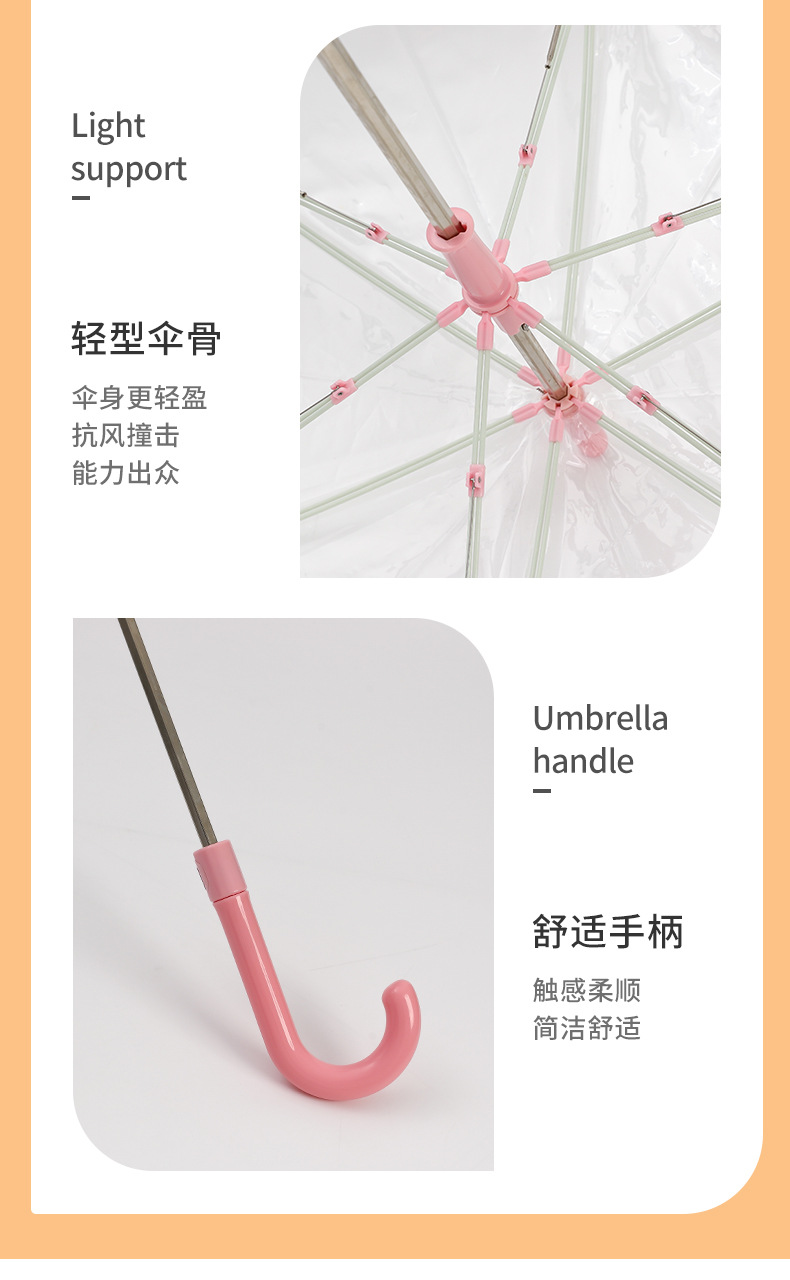 초등학생을 위한 곡선 손잡이 우산, 방수 직선 손잡이 사진 자동 우산 제조업체, 창의적인 작은 신선한 어린이 투명 우산 공급스토어 가기