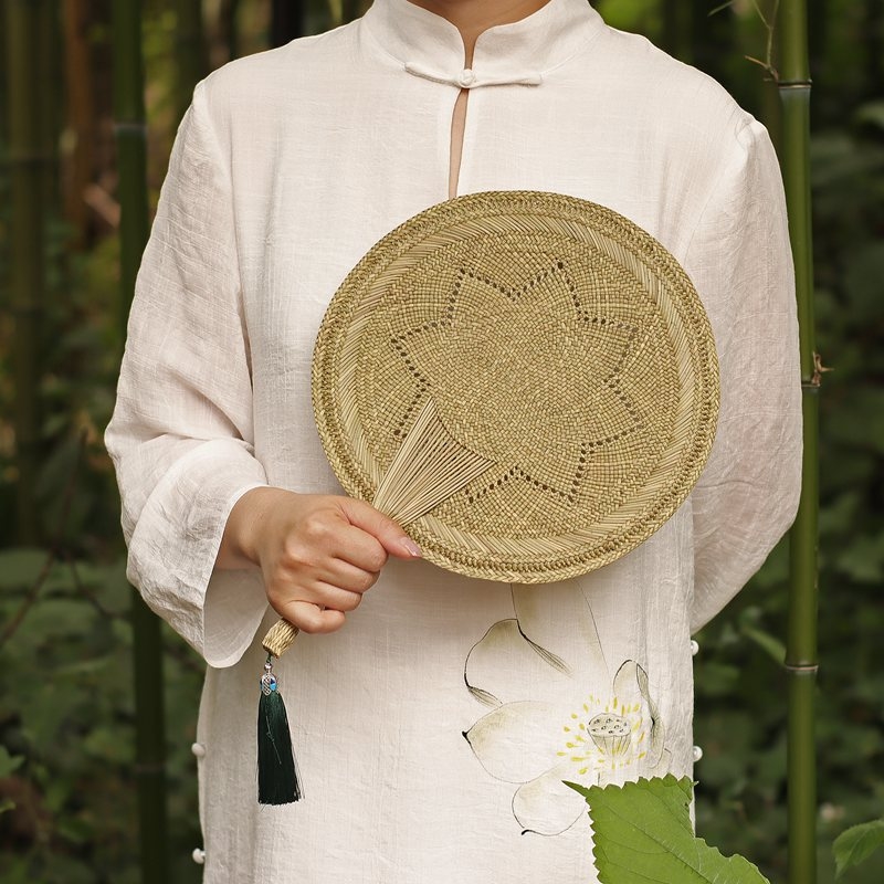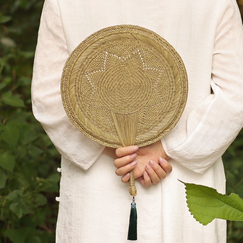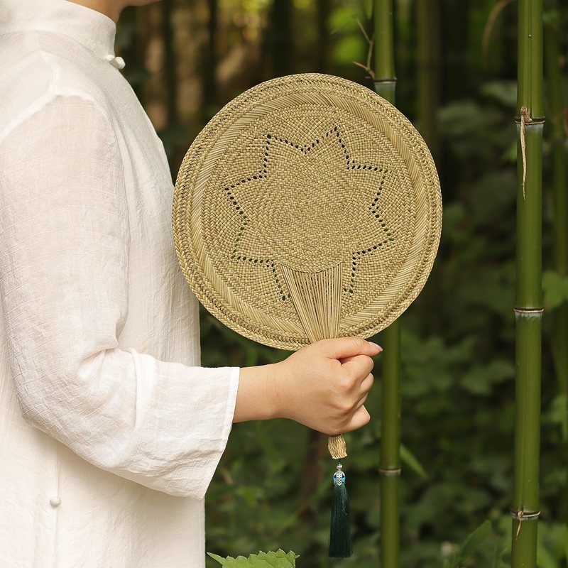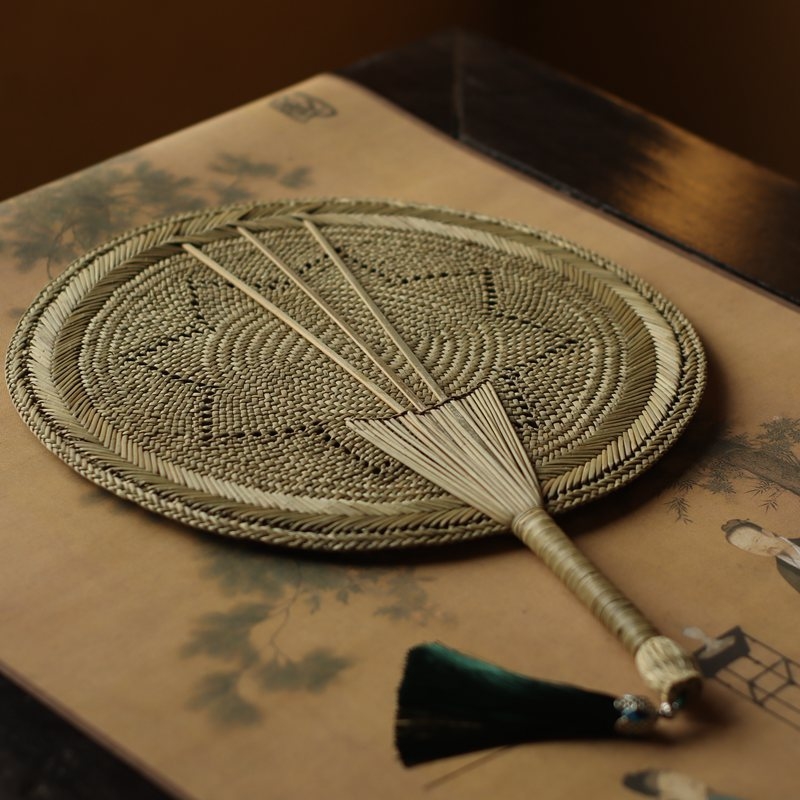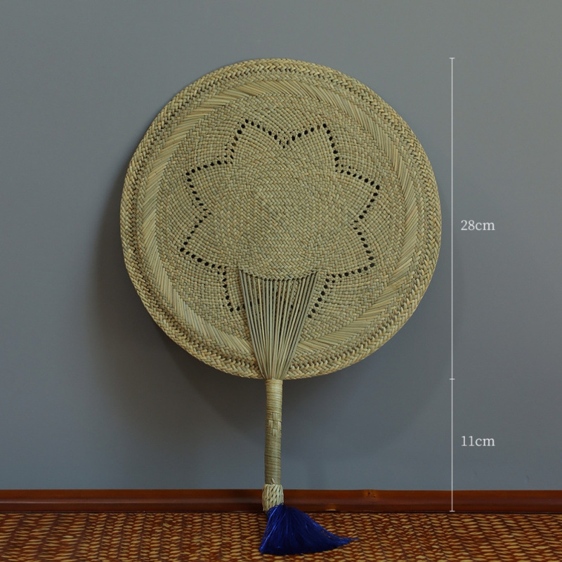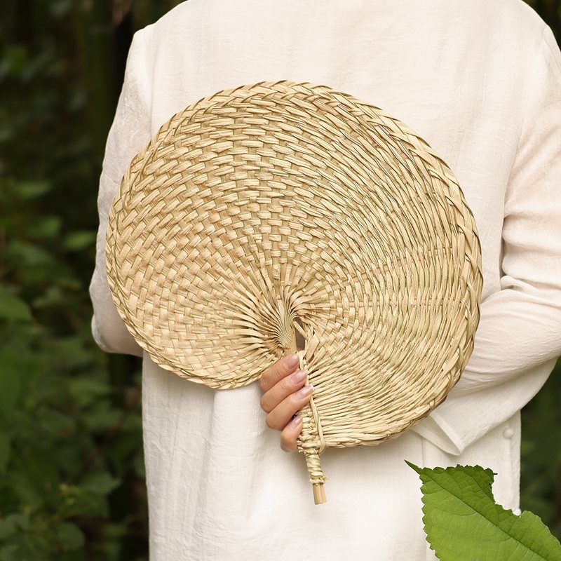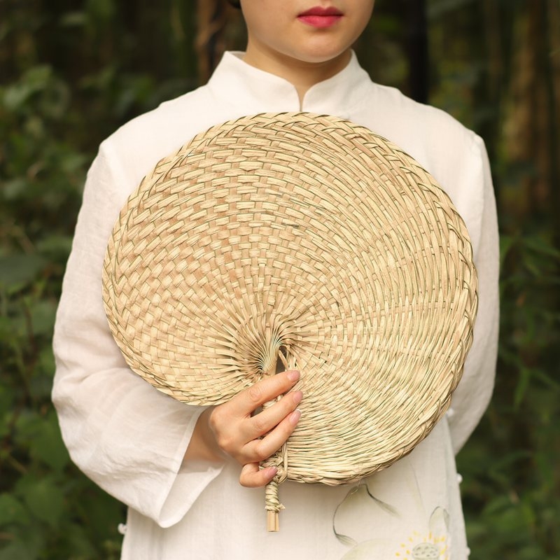 손으로 짠 밀짚부채, 목가적 스타일의 밀짚 여름 부채, 갈색 잎 밀짚부채, 실용적인 시원한 옛날식 손부채, 수제 대나무 부채스토어 가기