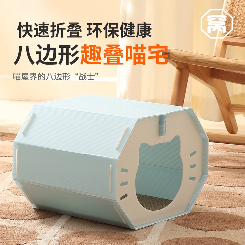 PP 중공 보드 팔각형 고양이 스크래치 보드 고양이 둥지 통기성 물 세척 가능 반 밀폐형 접이식 애완 동물 둥지스토어 가기