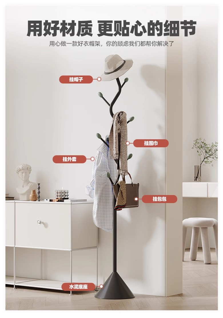 가정용 간단한 바닥 스탠딩 침대 옆 옷걸이 라이트 럭셔리 크림 스타일 옷걸이 인터넷 연예인 수직 실내 옷걸이스토어 가기