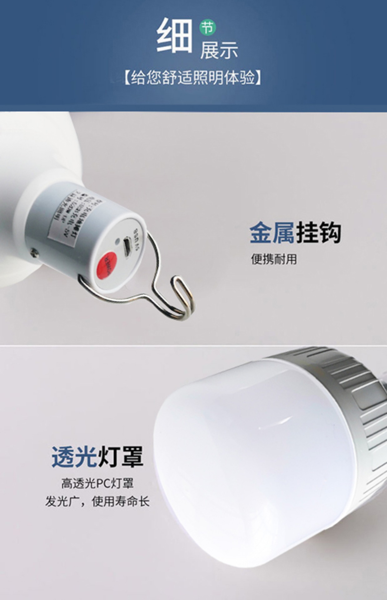 야시장 매점 충전식 램프, 초고휘도 따뜻한 빛, 플러그 아웃 데스크탑 클립 홀더, 휴대용 LED 조명