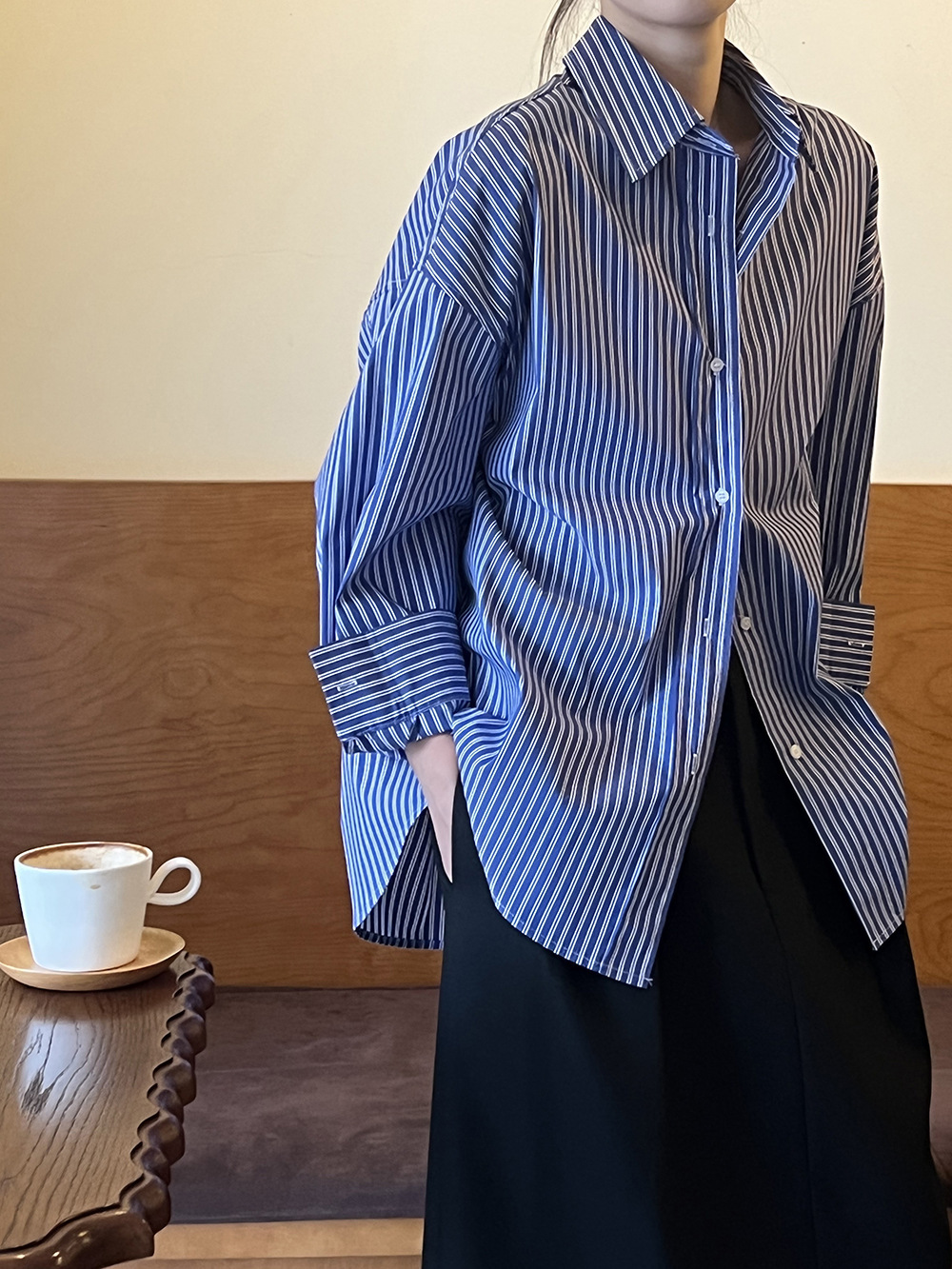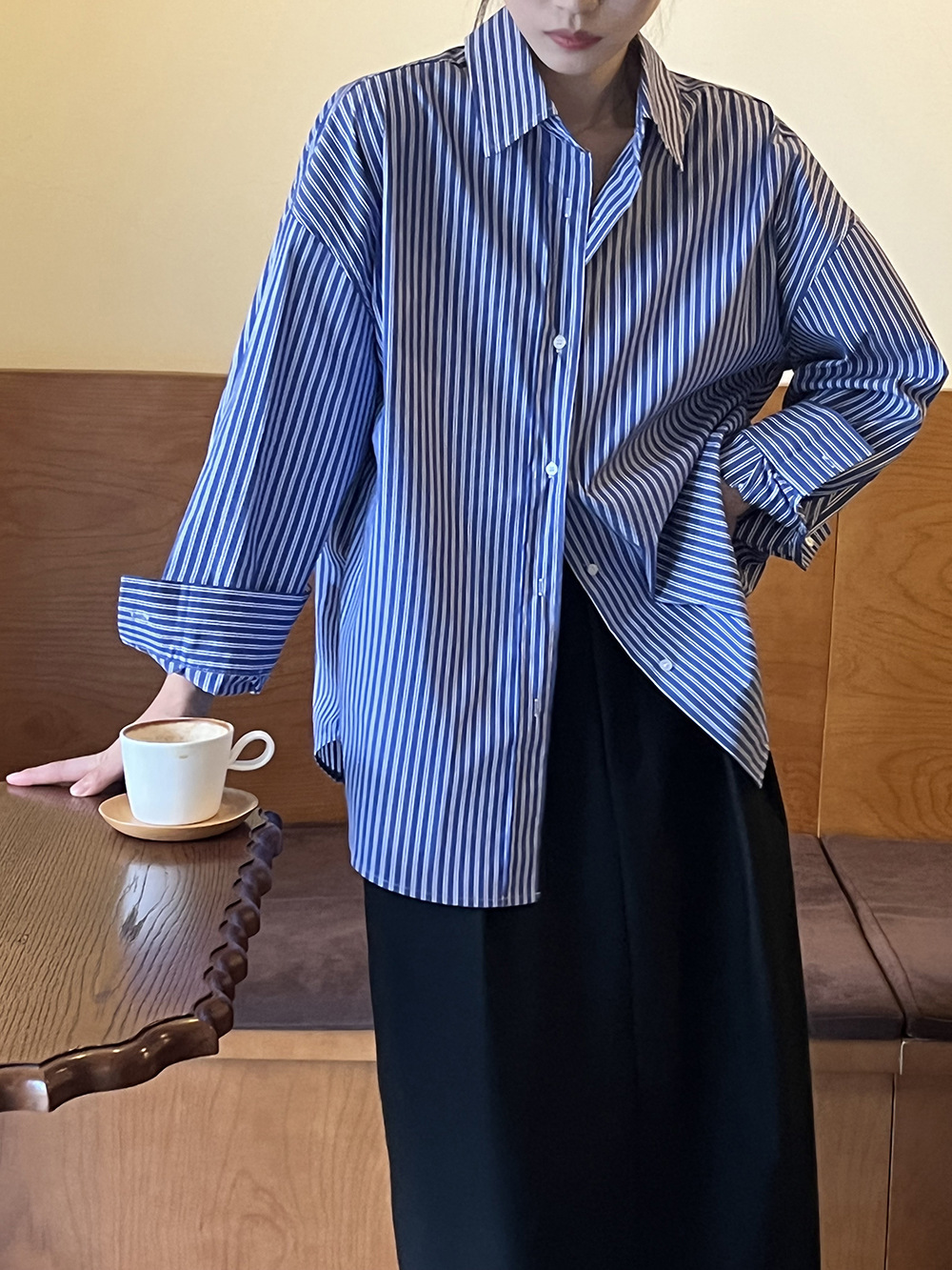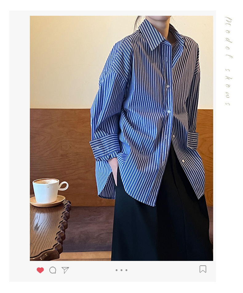 여성용 프렌치 블루 스트라이프 셔츠 2025 새로운 디자인 틈새 루즈 다용도 탑 자외선 차단 셔츠 재킷스토어 가기