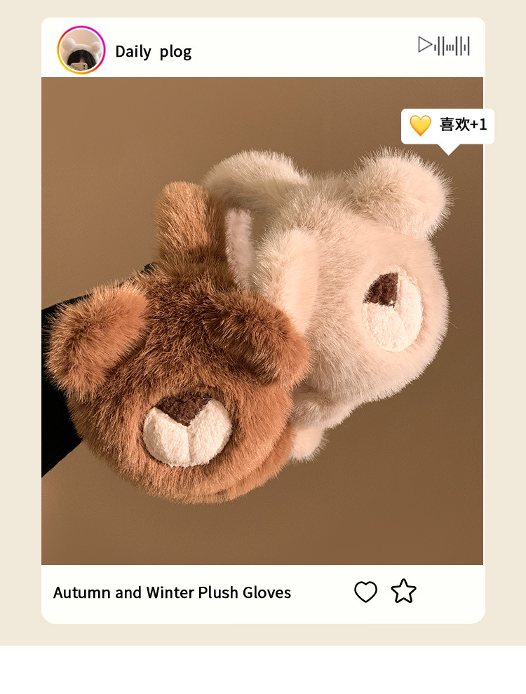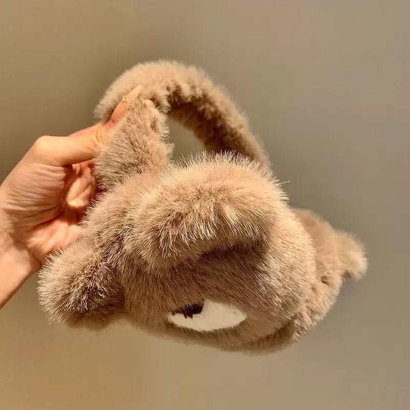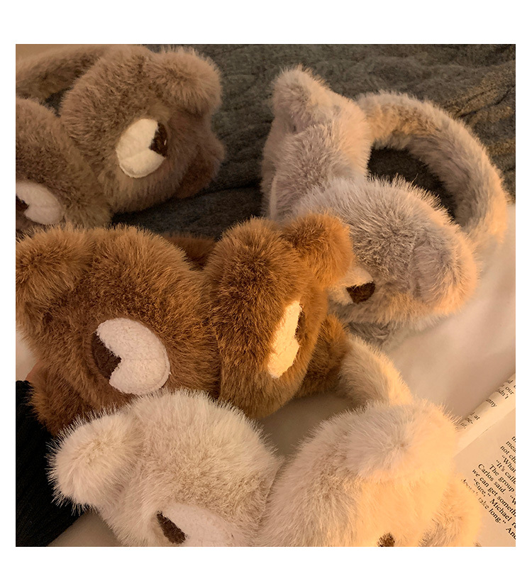 겨울철 여학생을 위한 귀여운 베이지색 봉제 곰 귀마개, 사이클링 방한 및 따뜻한 귀마개, 귀마개스토어 가기