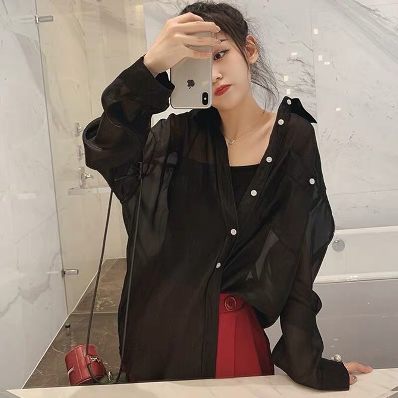 여성용 쉬폰 자외선 차단 의류, 여름 멜빵, 숄 가디건 재킷, 투명한 스몰 드레이프 아이스 실크 셔츠 탑스토어 가기