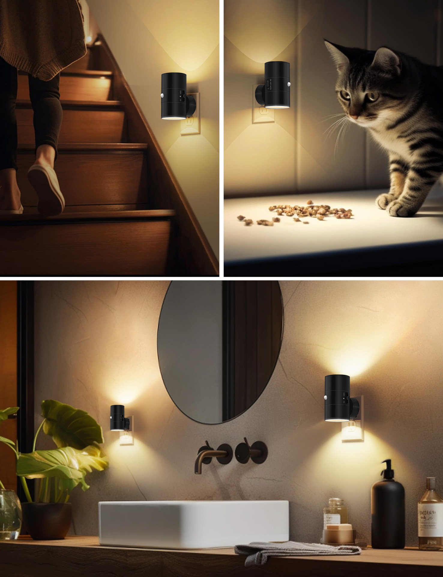 • 야간 조명 - 검정색 - 단색 따뜻한 빛 - 미국 표준