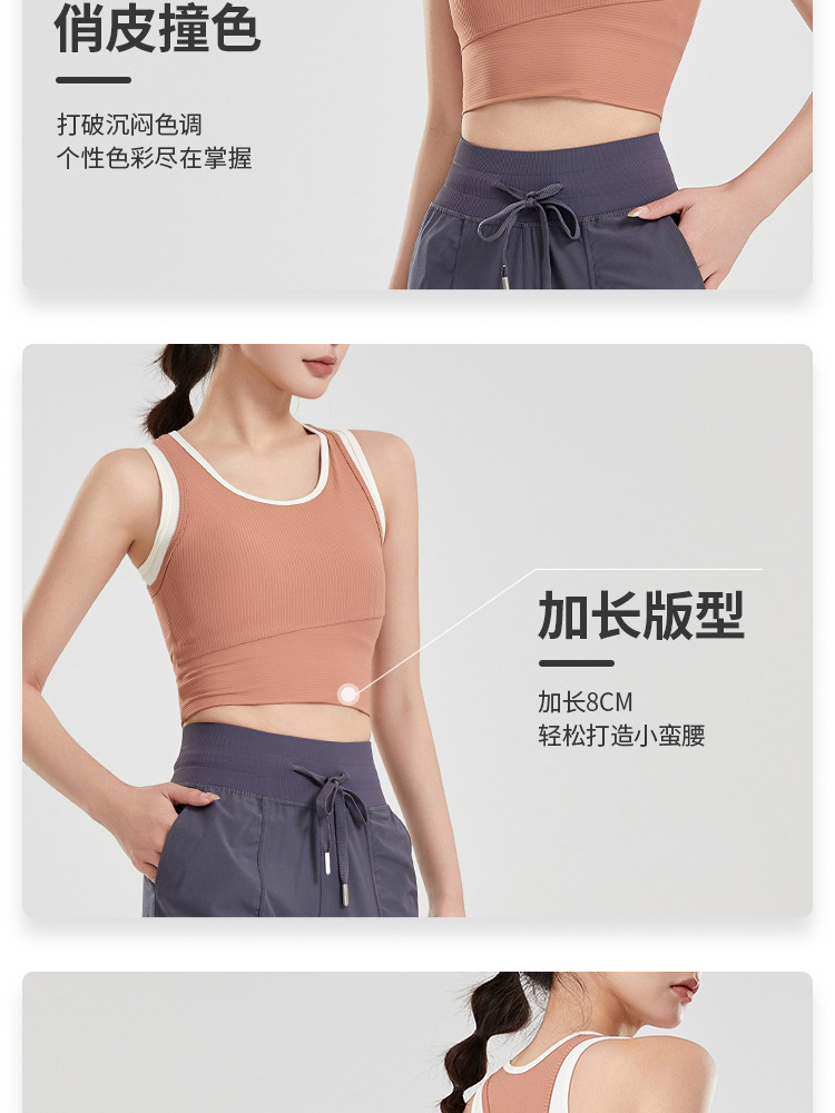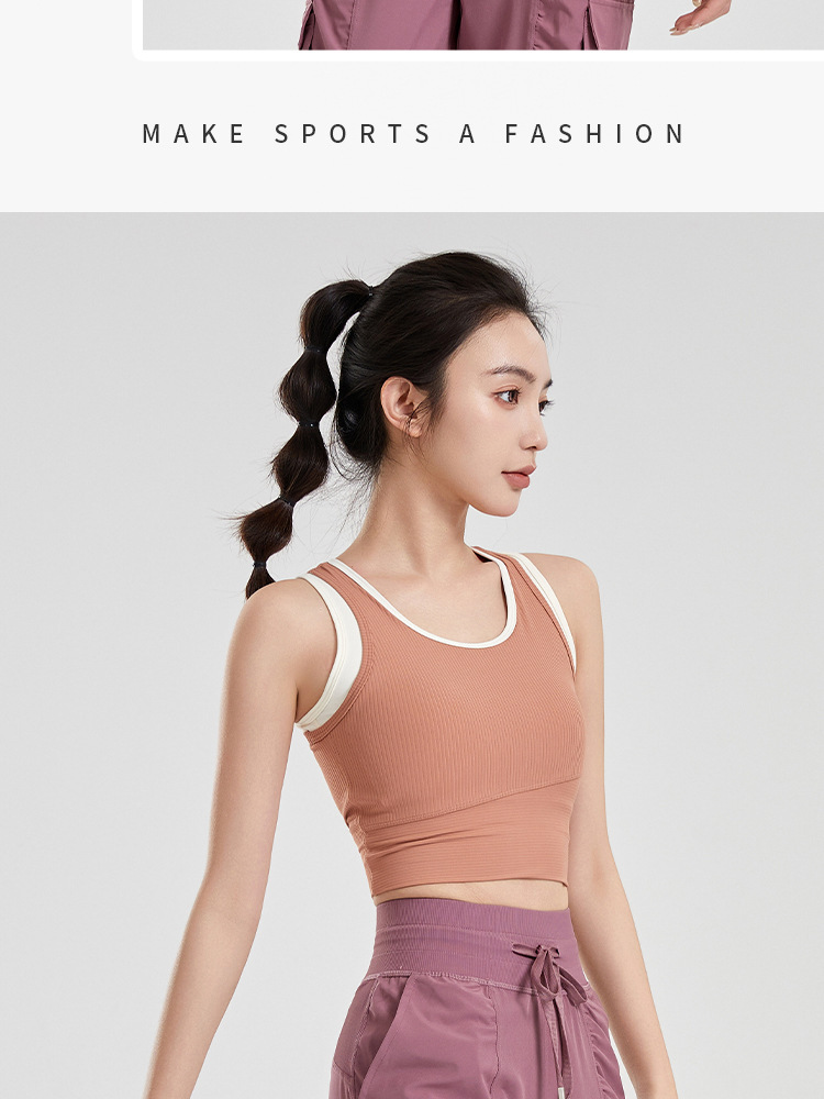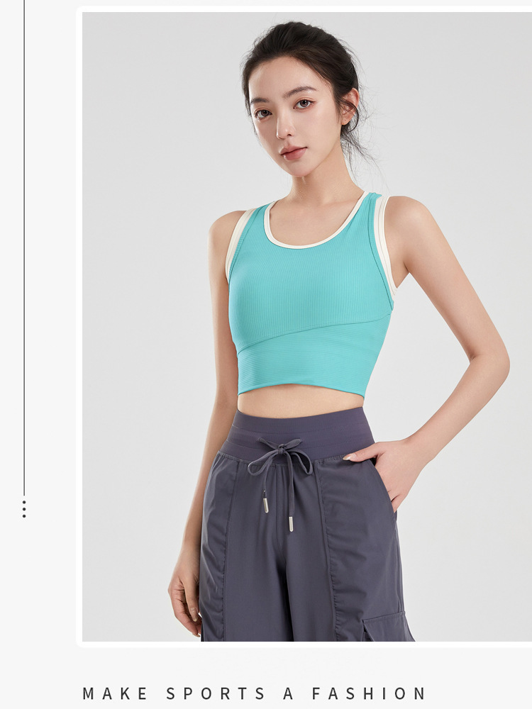 대비 색상 스레드 스포츠 브라, 올인원 요가 브라, 고강도 충격 방지 복부 조절 피트니스 조끼, 얇고 아름다운 등스토어 가기