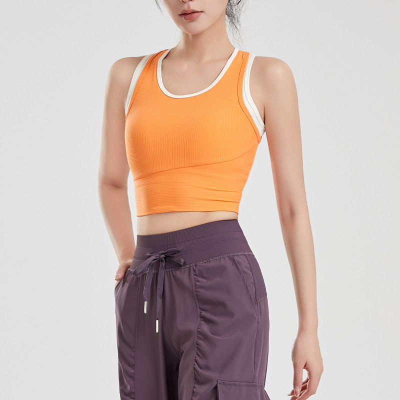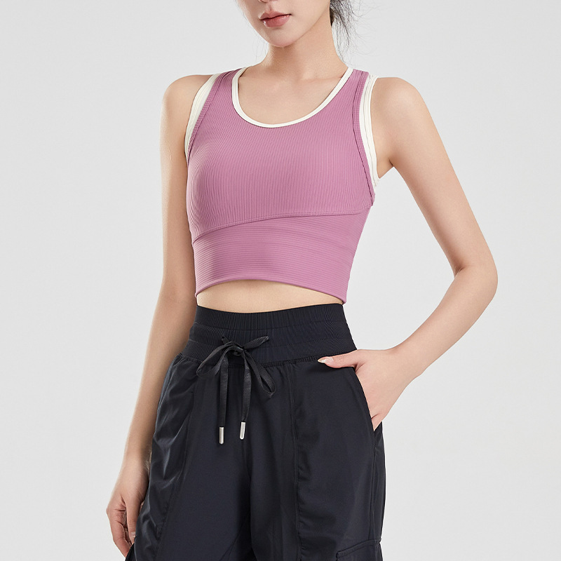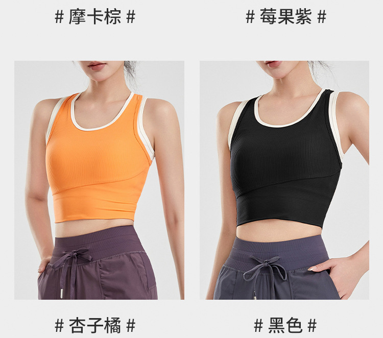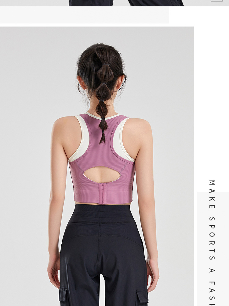 대비 색상 스레드 스포츠 브라, 올인원 요가 브라, 고강도 충격 방지 복부 조절 피트니스 조끼, 얇고 아름다운 등