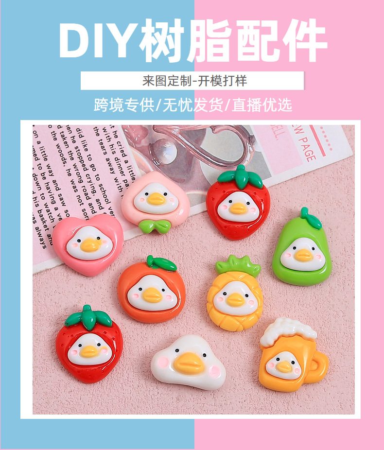 크리 에이 티브 오리 파인애플 과일 만화 수제 diy 크림 접착제 수지 액세서리 작은 액세서리 쥬얼리 재료 도매스토어 가기