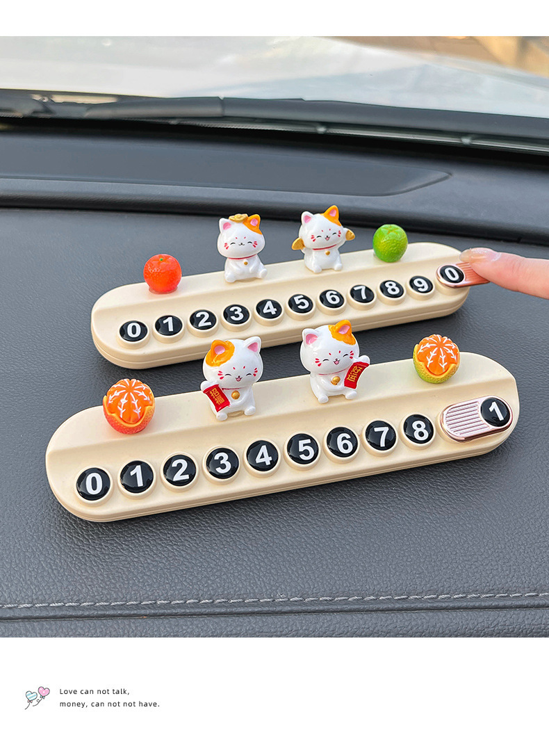 행운의 고양이 자동차 임시 주차 번호판 여성용 자동차 이동 전화 번호판 자동차 휴대폰 번호판은 장식 용품을 숨길 수 있습니다스토어 가기
