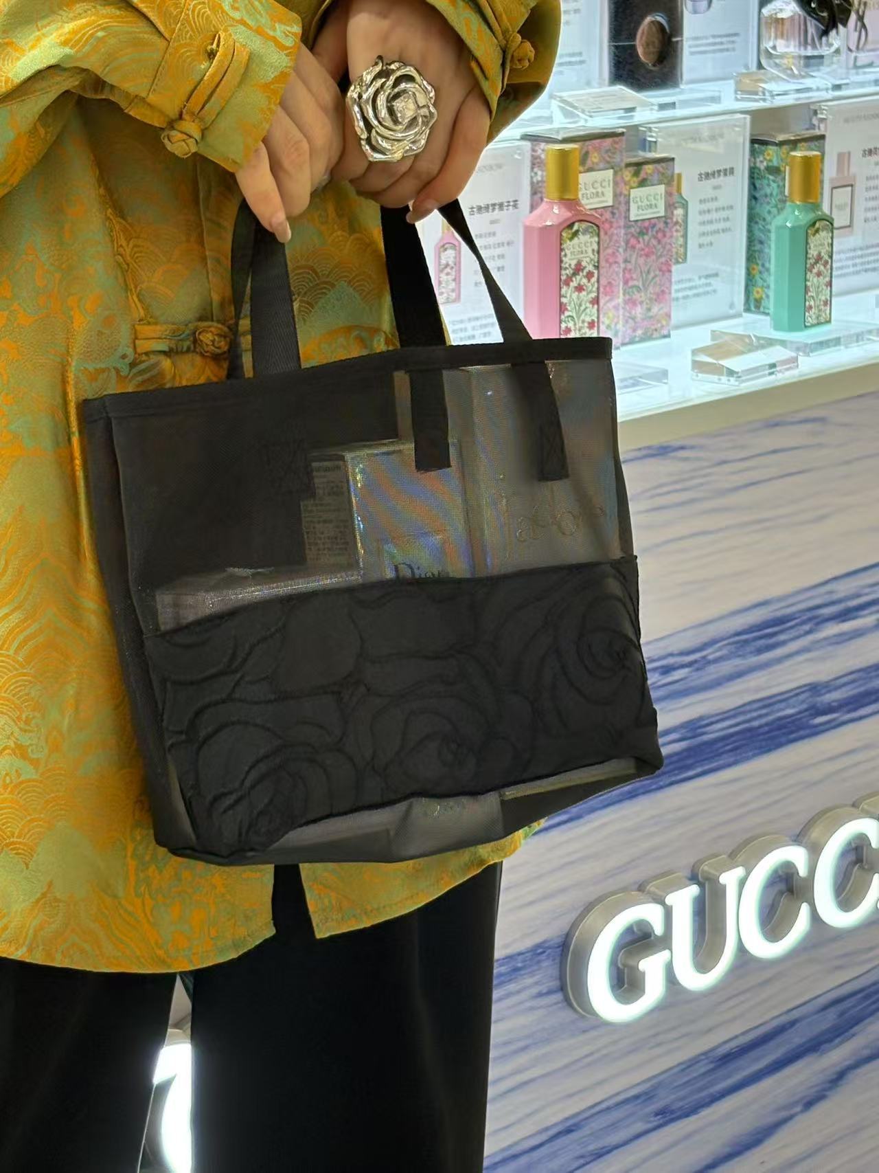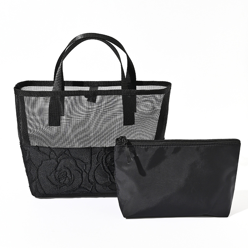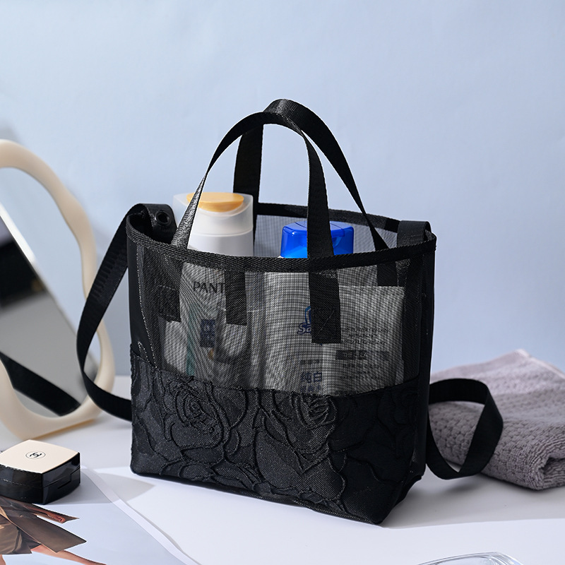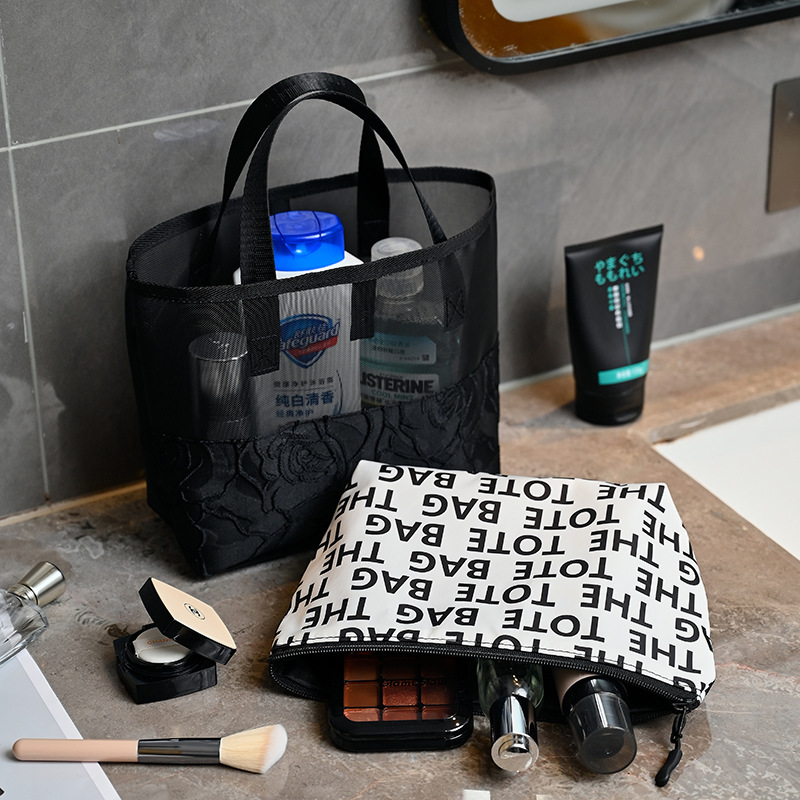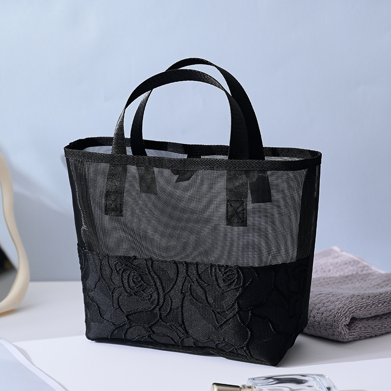 2025 두꺼운 시스루 메쉬 메이크업 가방, 세면도구 가방, 일상 휴대용 휴대용 고급 장미 보관 가방