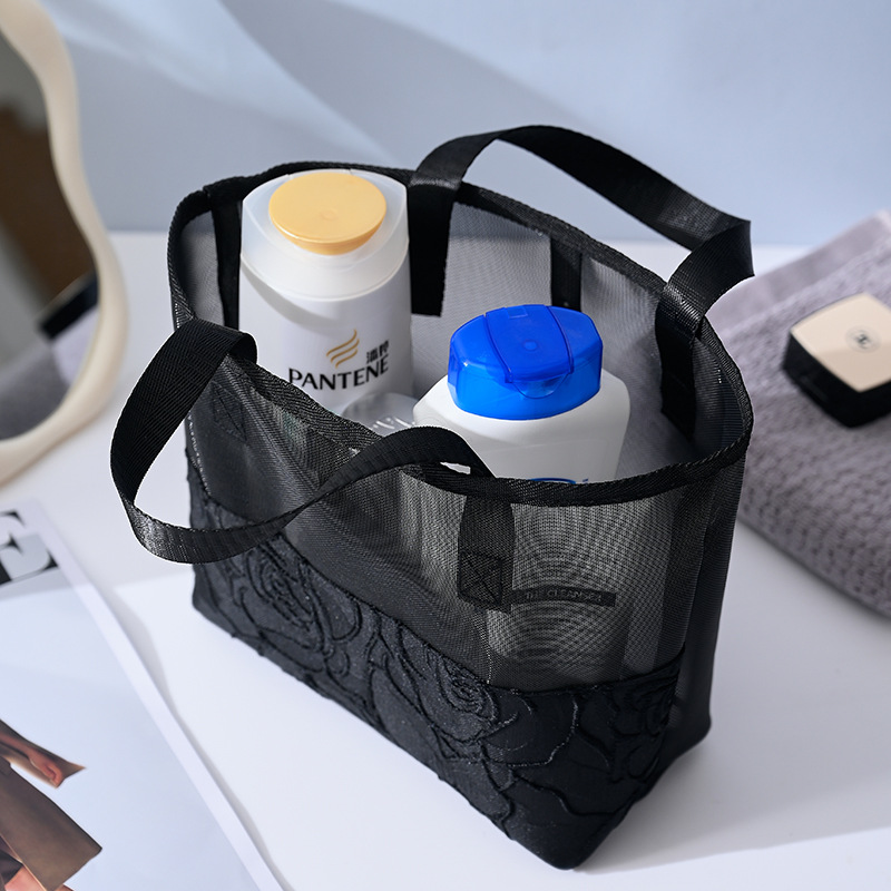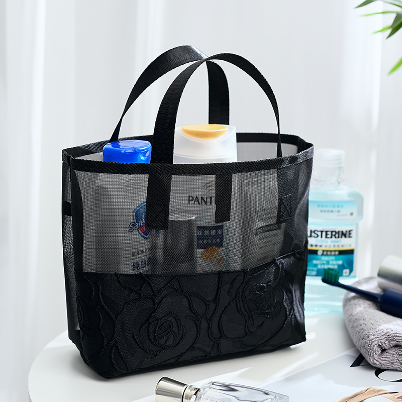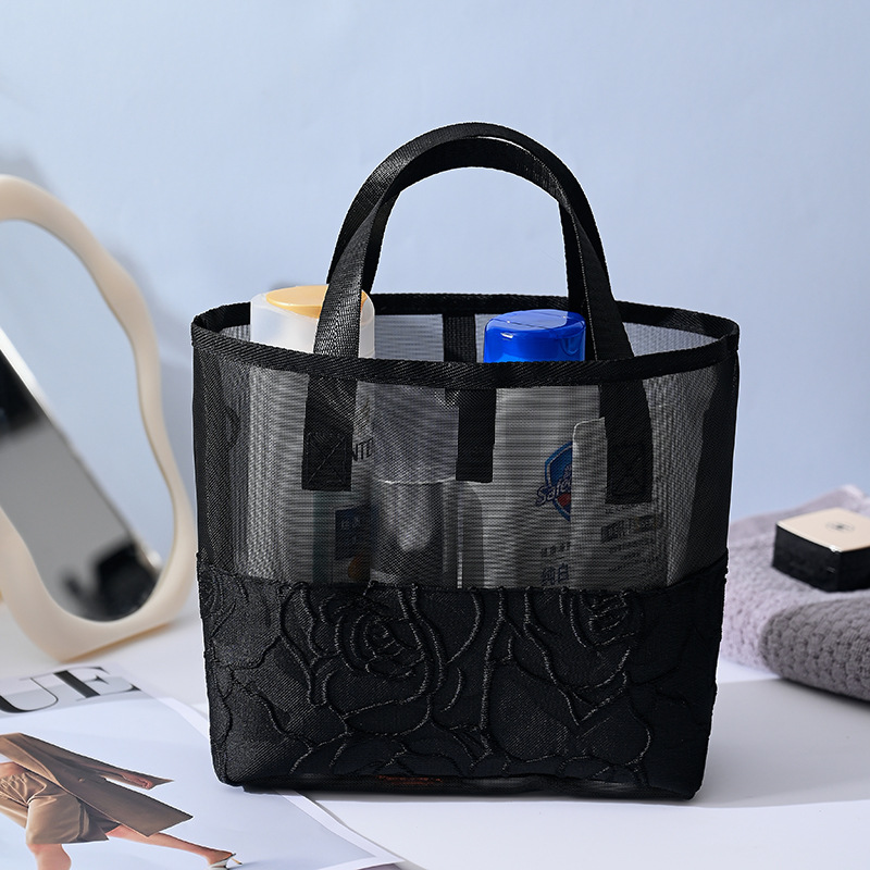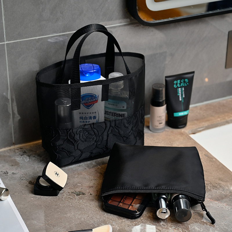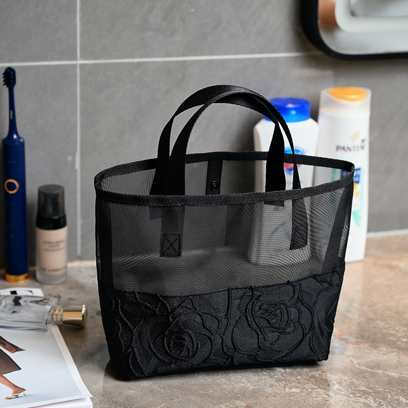 2025 두꺼운 시스루 메쉬 메이크업 가방, 세면도구 가방, 일상 휴대용 휴대용 고급 장미 보관 가방스토어 가기