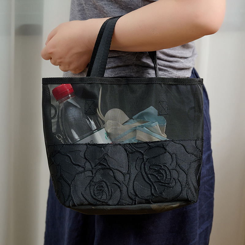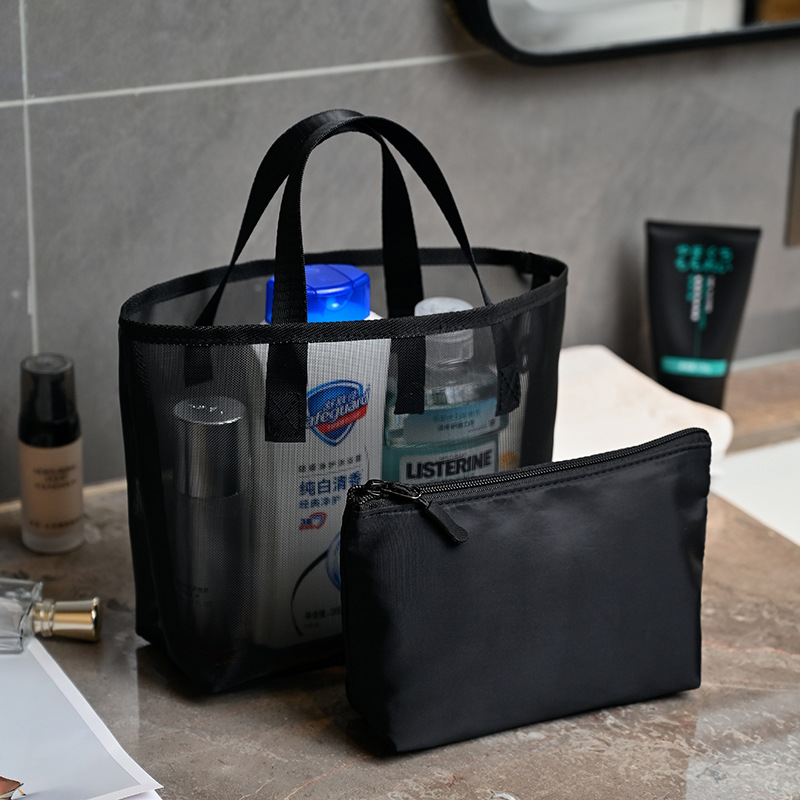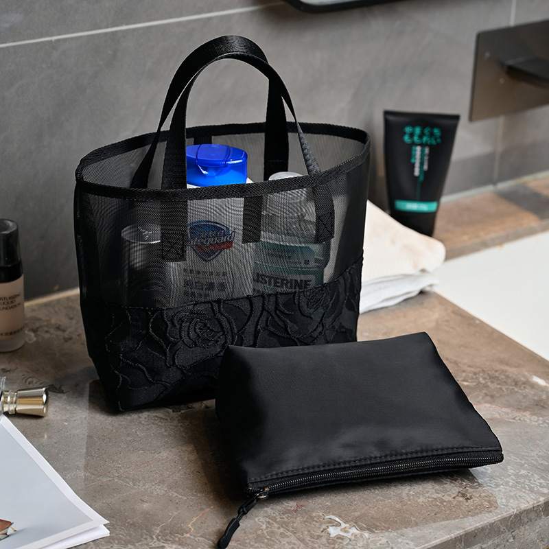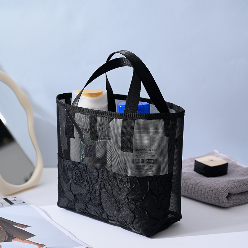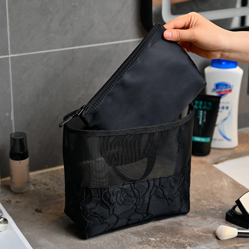 2025 두꺼운 시스루 메쉬 메이크업 가방, 세면도구 가방, 일상 휴대용 휴대용 고급 장미 보관 가방스토어 가기