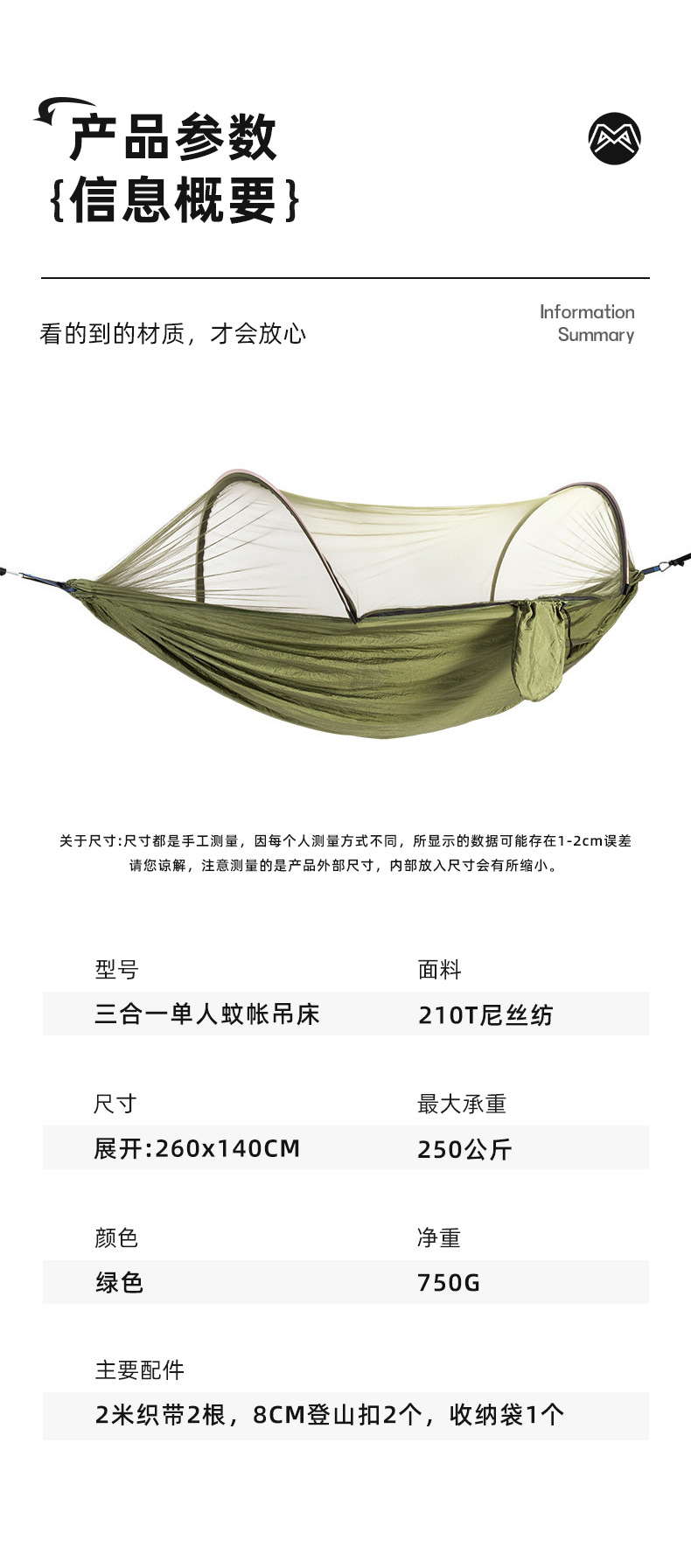 • 과일 녹색과 진한 녹색 260*140 일반 모기장 해먹
