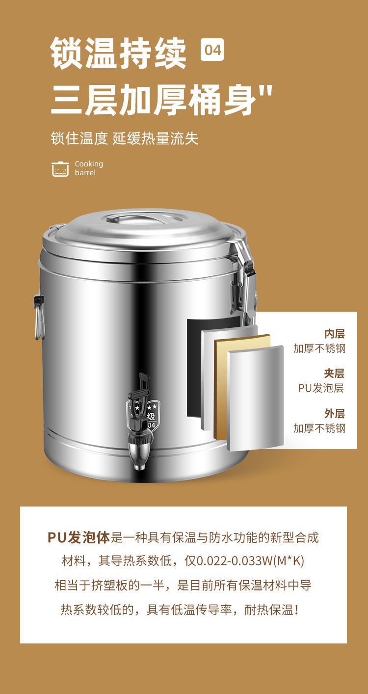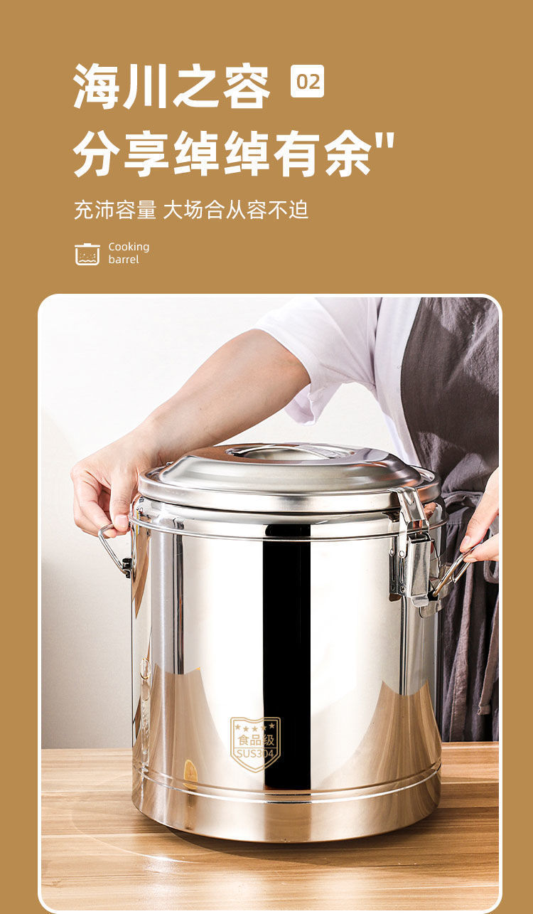 304 스테인레스 스틸 단열 버킷, 초장형 상업용 대용량 캔틴 밥 버킷, 밀크 티 버킷, 매점 두부 수프 버킷