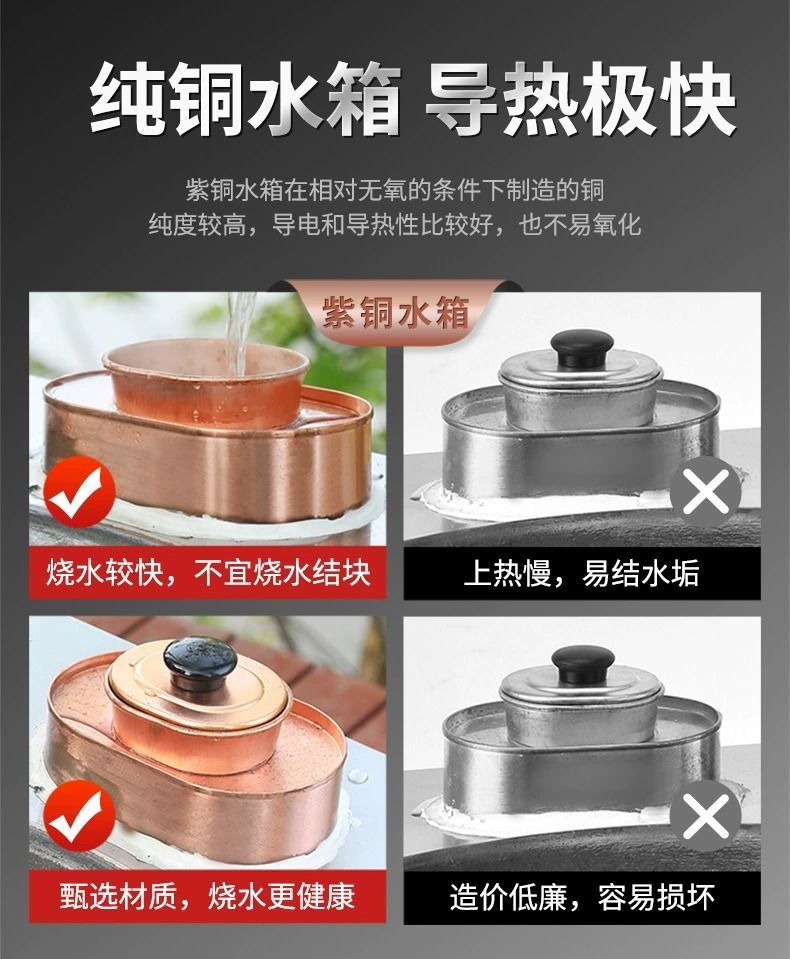 • 일반 두꺼운 스테인레스 스틸 모델 - 20년 보증 - 64cm 싱글 스토브 + 접이식 접시 + 구리 물탱크