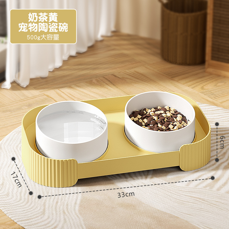 고양이 그릇 세라믹 고양이 사료 그릇 더블 그릇 개 그릇 애완 동물 고양이 고양이 사료 그릇 개 사료 그릇 식수 뒤집힘 방지 고양이 물 그릇