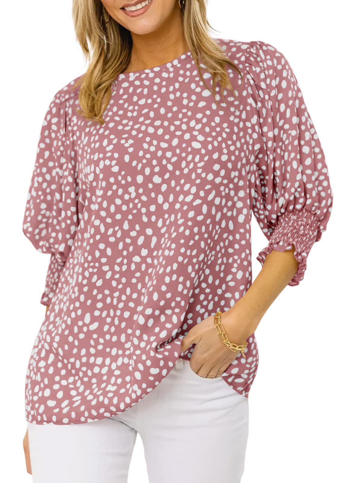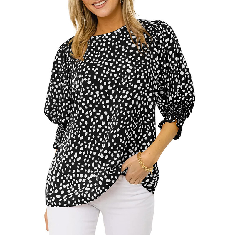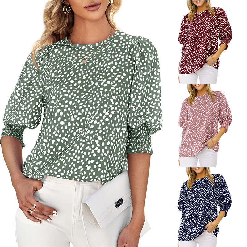 아마존 국경 간 유럽과 미국 대외 무역 여성 의류 2025 여름 새로운 스타일 반팔 라운드 넥 느슨한 프린트 쉬폰 셔츠 여성스토어 가기