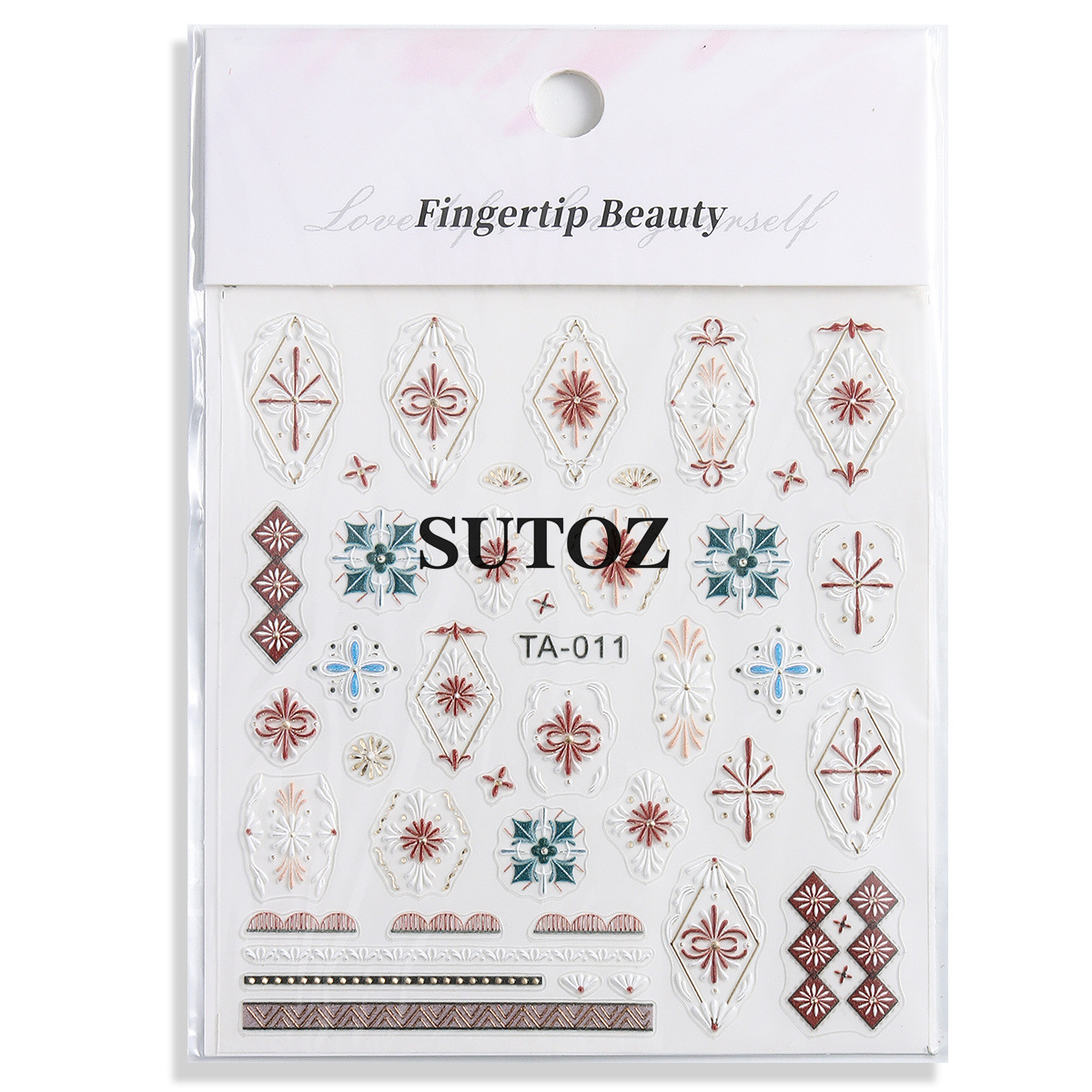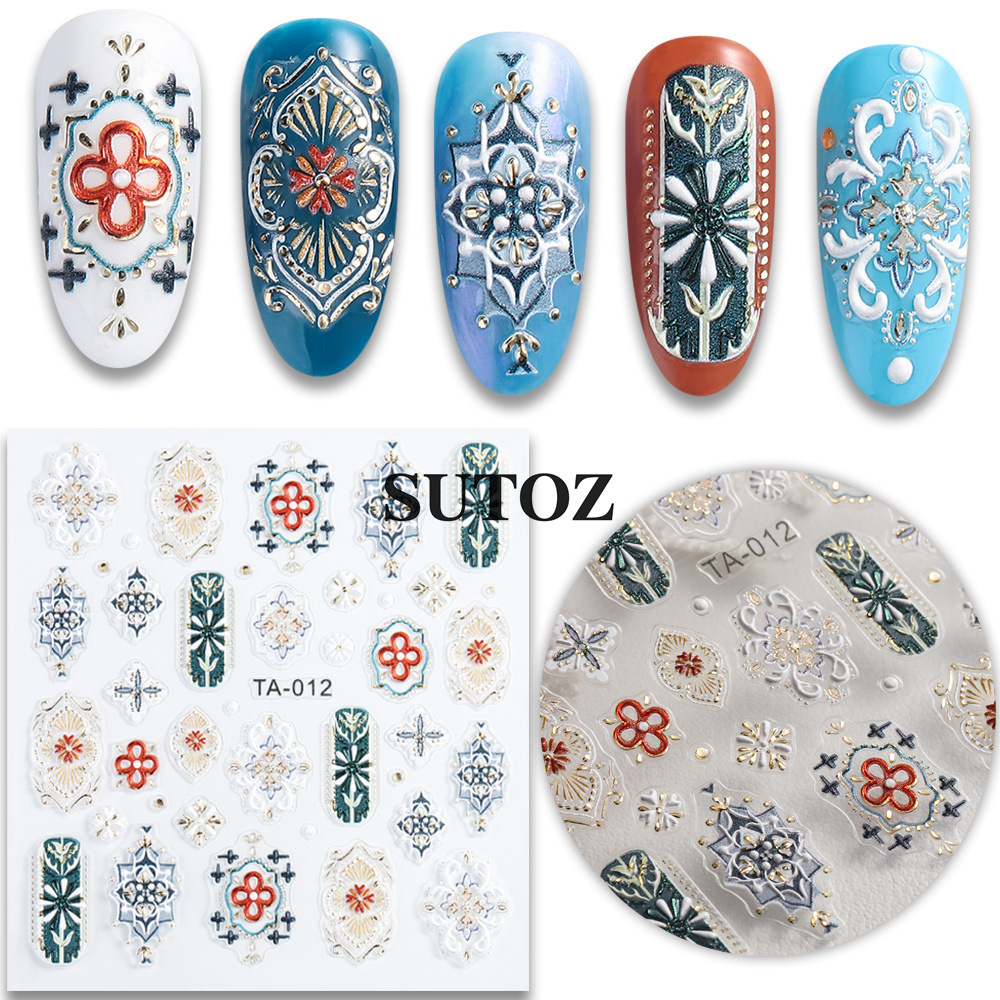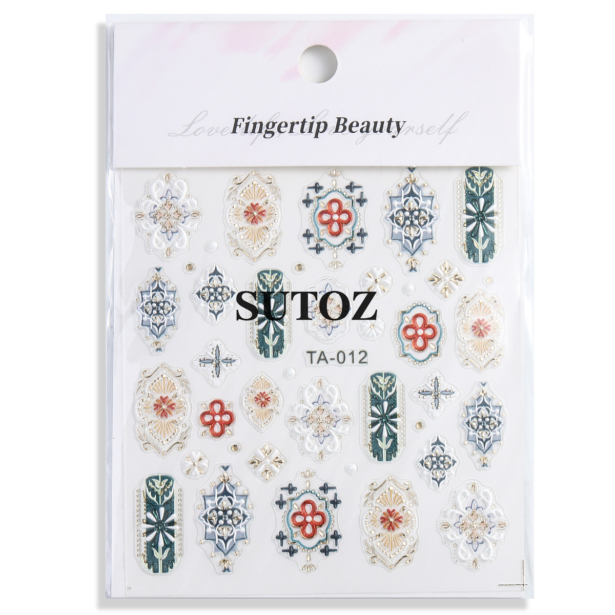 국경 간 새로운 네일 아트 스티커 복고풍 이국적인 스타일 보헤미안 타일 아트 네일 접착 스티커스토어 가기