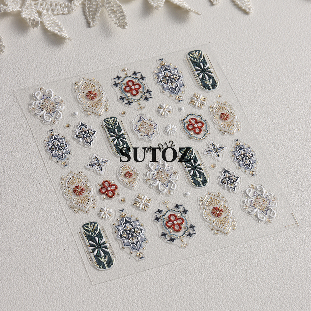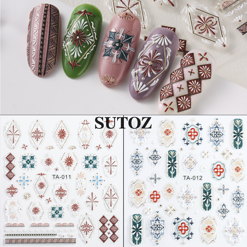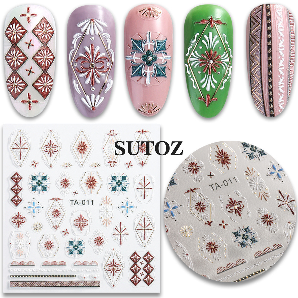 국경 간 새로운 네일 아트 스티커 복고풍 이국적인 스타일 보헤미안 타일 아트 네일 접착 스티커스토어 가기