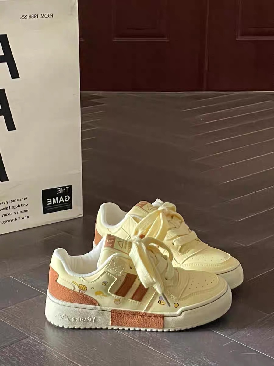 봄 여름 시크한 여성용 인터넷 연예인 틈새 그래피티 밀크 옐로우 스니커즈, 다용도 두꺼운 밑창 육군 훈련화, 스포츠 및 레저 빵 신발스토어 가기