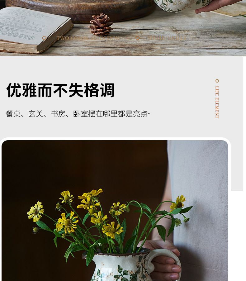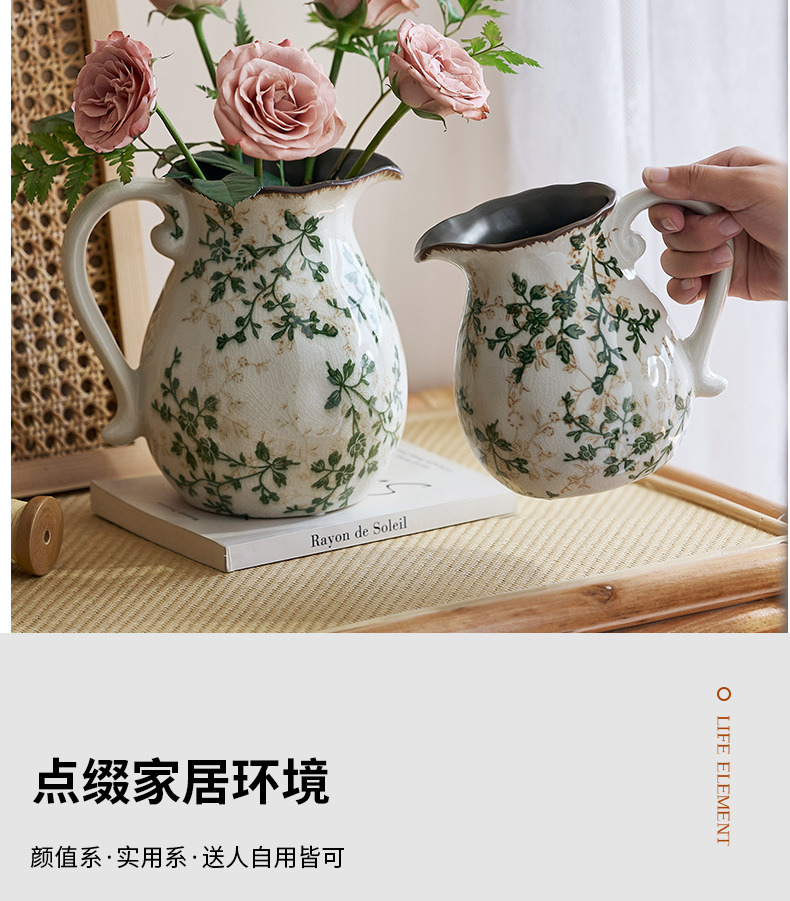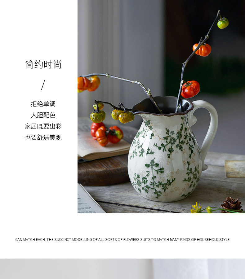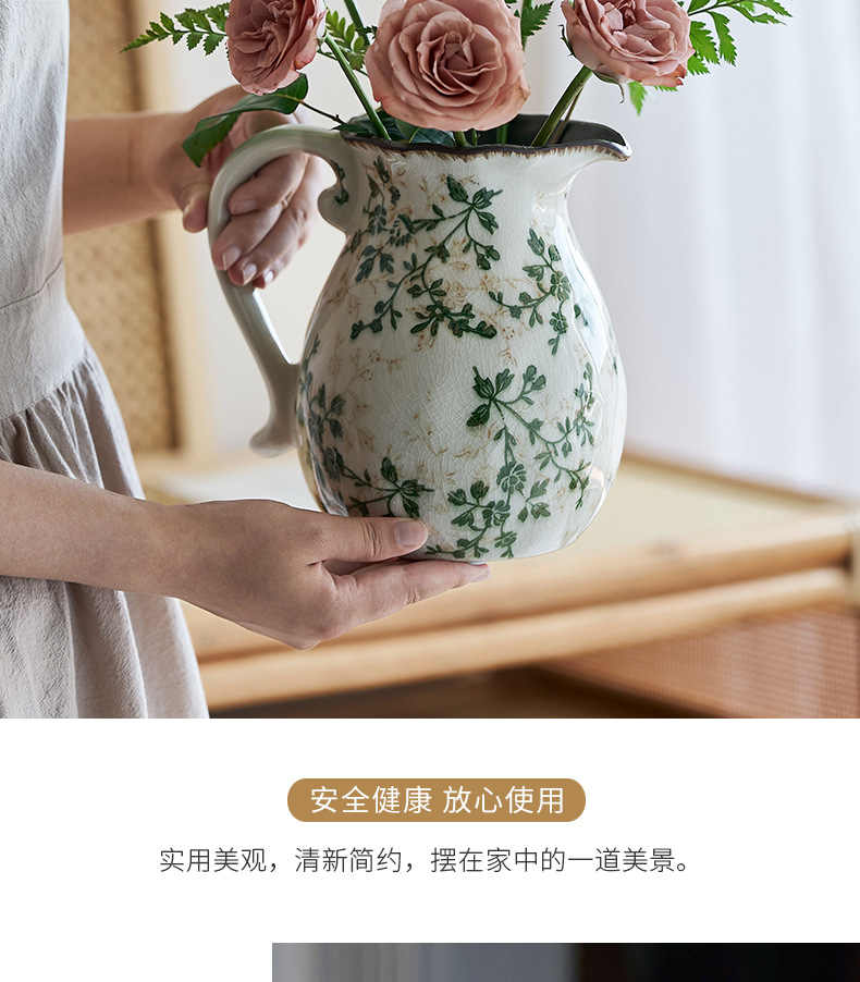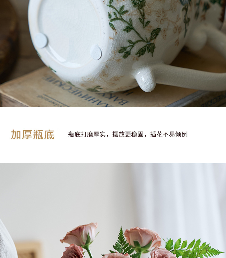 미국 컨트리 아이스 크랙 우유 병 세라믹 꽃병 목가적 인 풍수 꽃꽂이 장식품 복고풍 크리 에이 티브 휴대용스토어 가기
