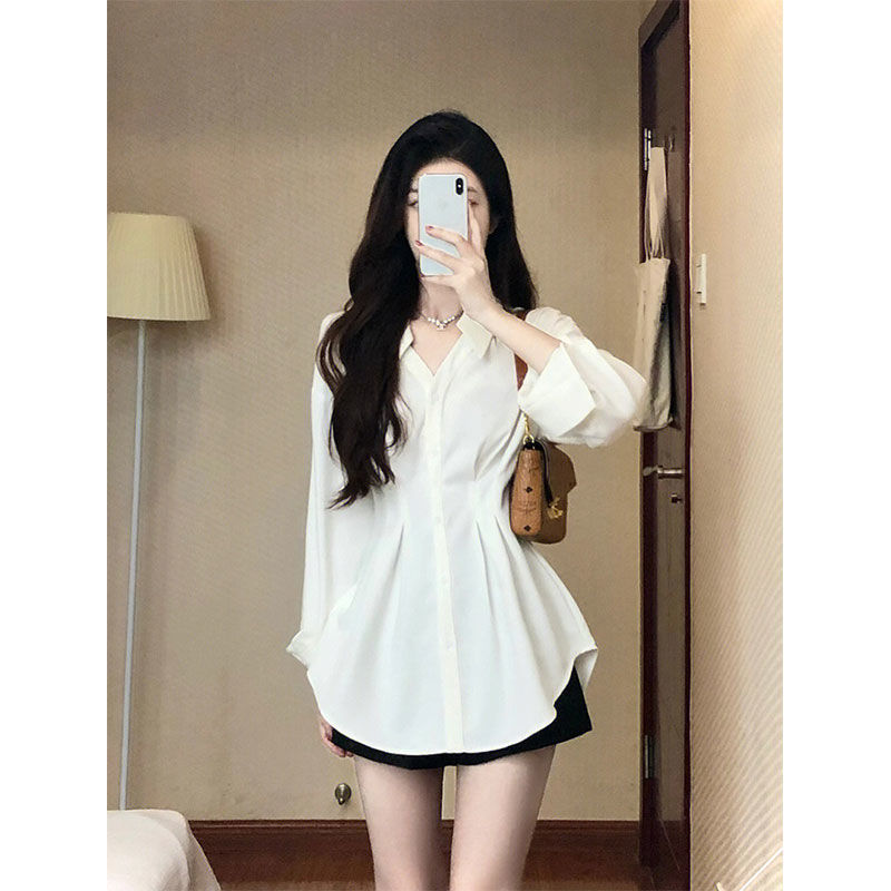 여성용 칼라 쉬폰 셔츠, 봄, 가을 디자인, 프렌치 니치 핀치 웨이스트 긴팔 셔츠 탑, 봄 스타일스토어 가기