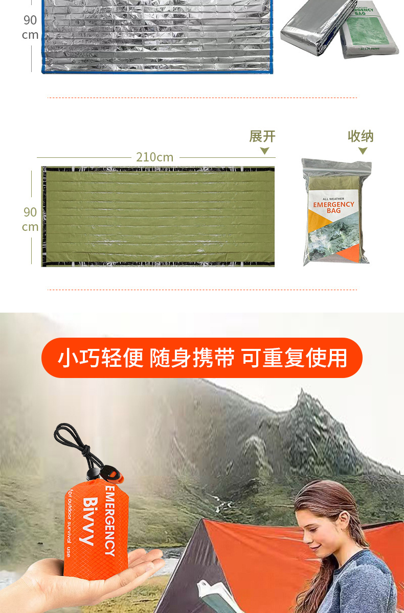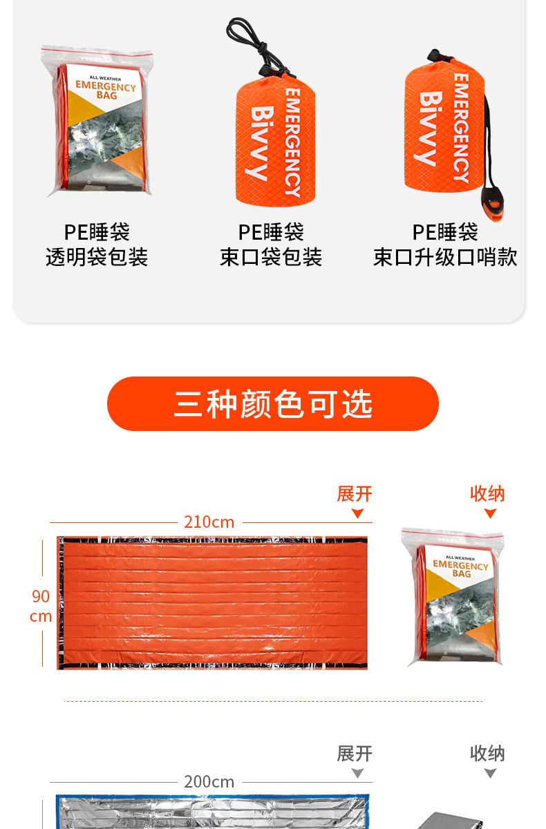 야외 PE 알루미늄 필름 비상 침낭 절연 응급 담요 생존 휴대용 여행 캠핑 다기능 국경 간 대외 무역스토어 가기