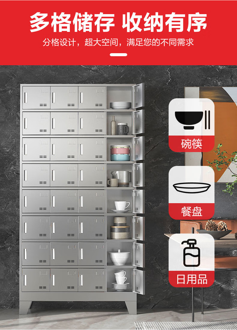 스테인레스 스틸 캔틴 찬장 학교 식기 캐비닛 레스토랑 직원 식사 트레이 캐비닛 직원 멀티 도어 멀티 그리드 도시락 보관 캐비닛스토어 가기