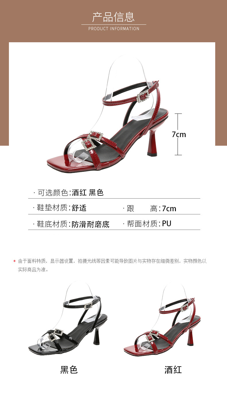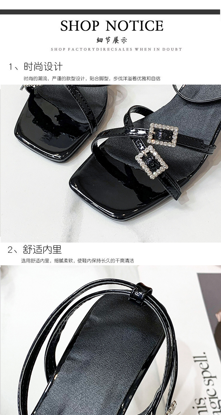 여성용 원라인 하이힐 2025 여름 신작 블랙 기질 스틸레토 하이힐 여성용 라인스톤 하이힐 프렌치 아우터 샌들