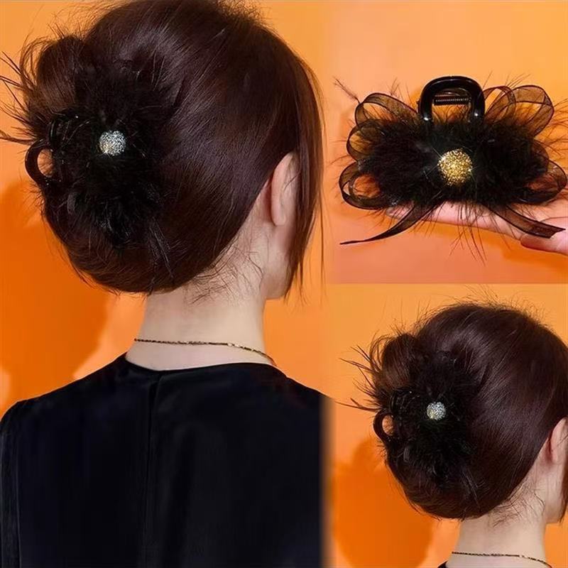 고급 타조 깃털 집게, 새로운 스타일, 다재다능한 뒷머리 머리핀, 상어 클립, 머리핀, 모자