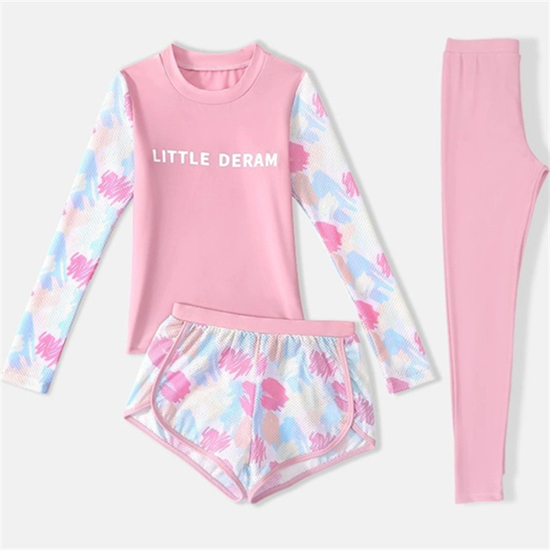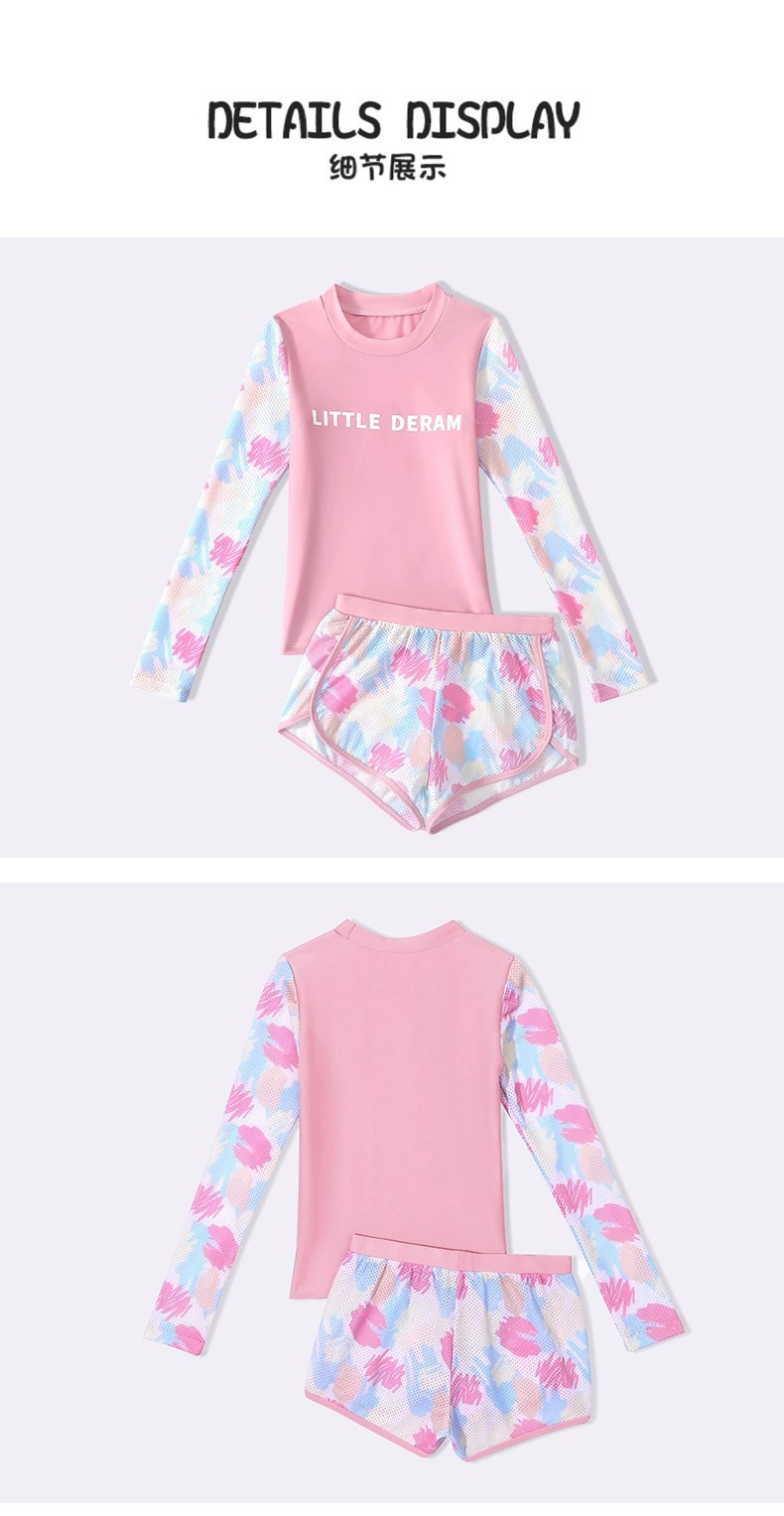 어린이 수영복 새로운 스타일의 소녀 중대형 어린이 속건성 자외선 차단제 보수적인 긴팔 바지 수영 훈련 스플릿 수영복
