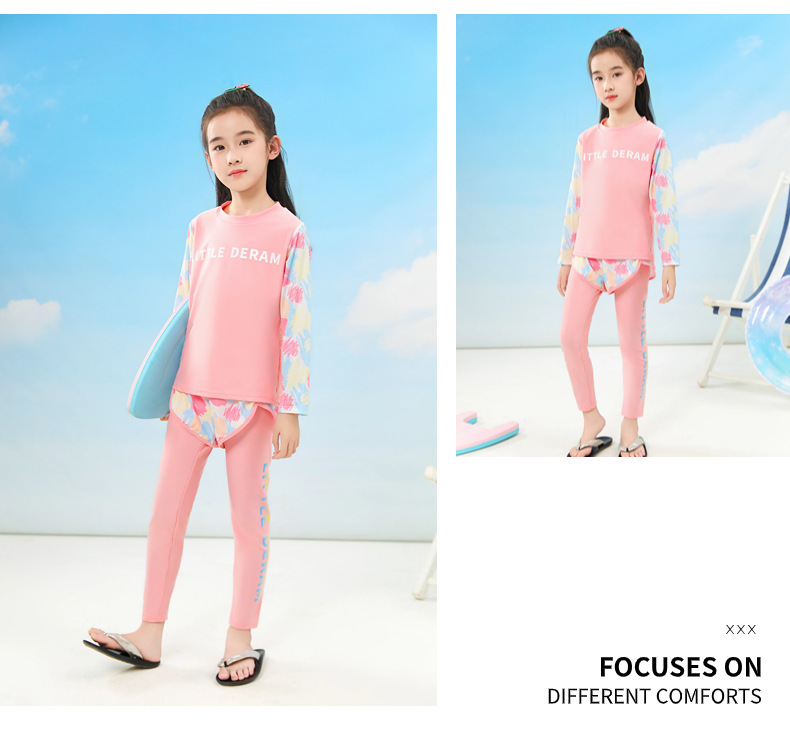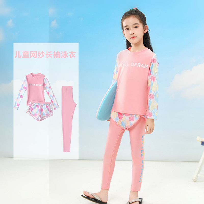 어린이 수영복 새로운 스타일의 소녀 중대형 어린이 속건성 자외선 차단제 보수적인 긴팔 바지 수영 훈련 스플릿 수영복스토어 가기
